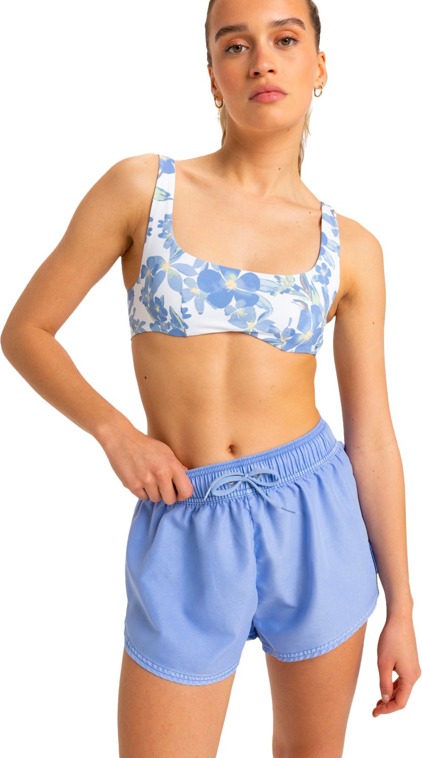 Short de bain Roxy No Bad Waves Boardshorts Grapemist pour femme, en polyester recyclé ultra-léger, taille plate élastiquée et fentes latérales pour liberté de mouvement.