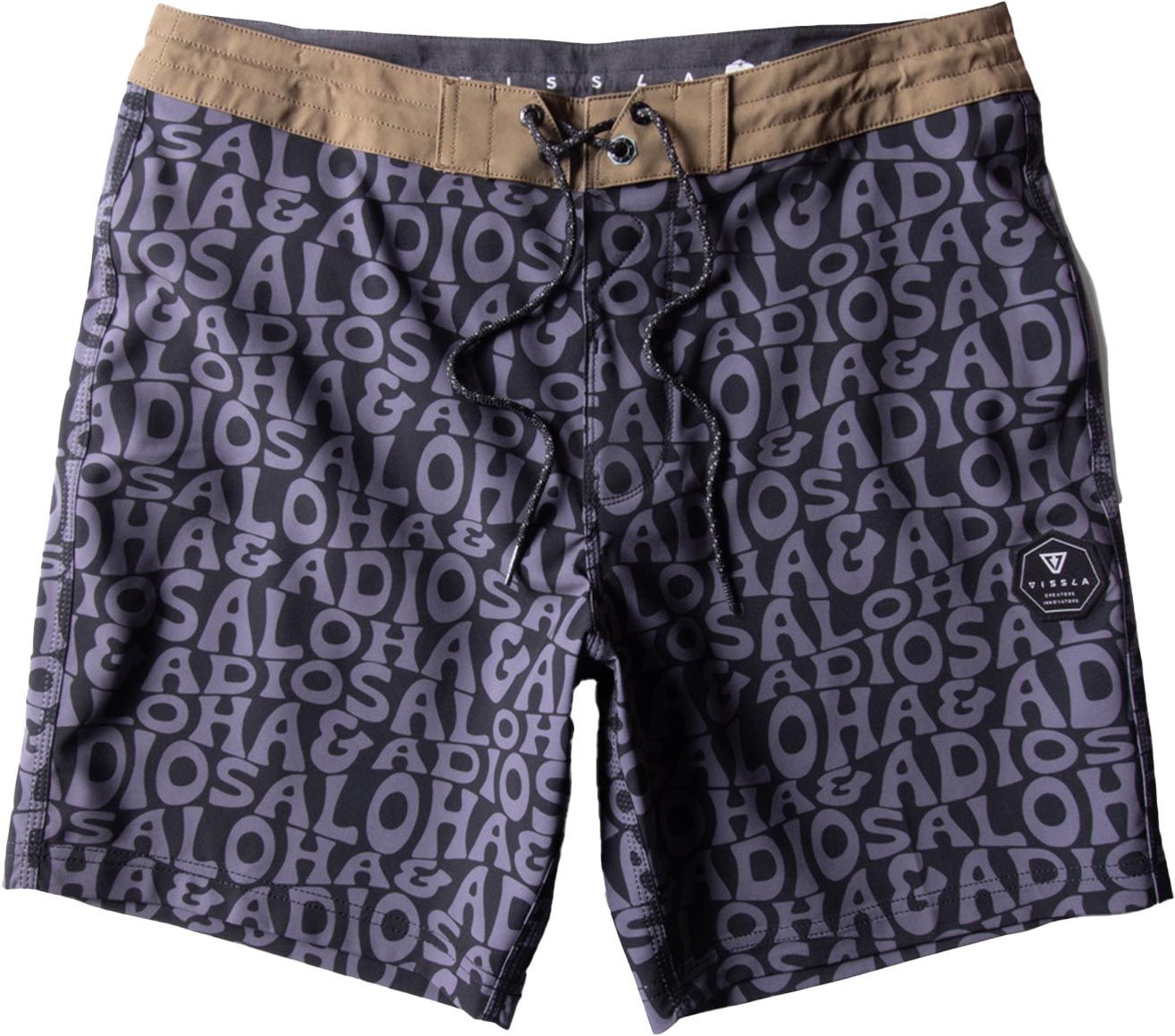 Le boardshort Vissla Aloha & Adios 17,5″ Shark pour homme allie légèreté extensible et matières durables, avec cordon ajustable, poche arrière et logo brodé.