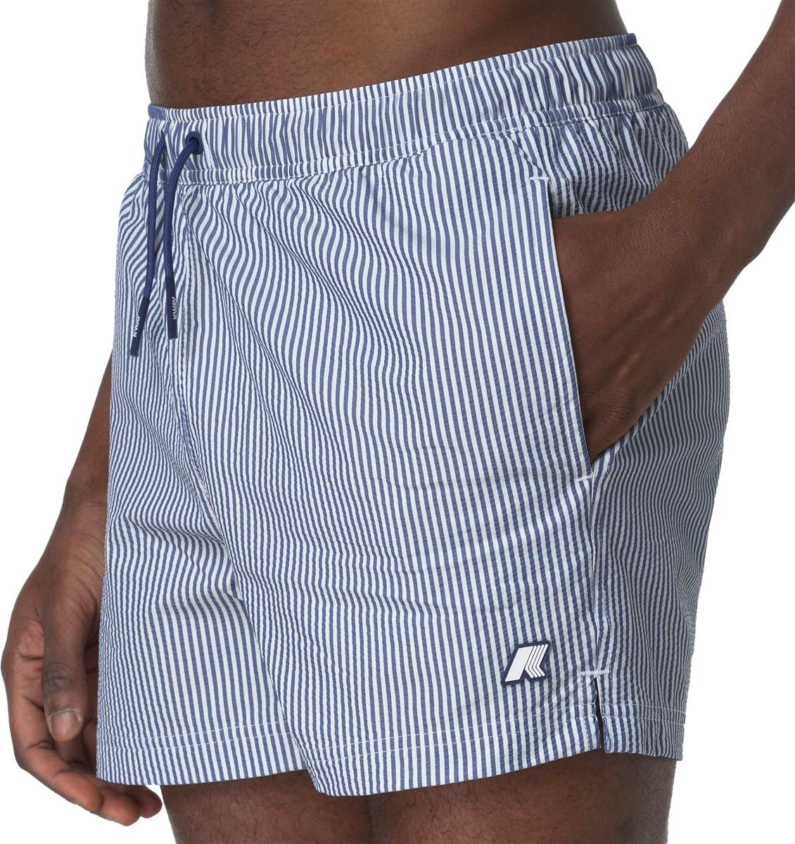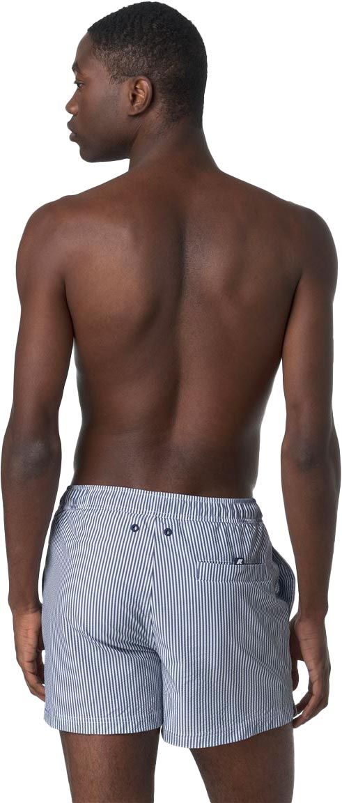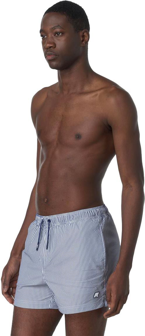 Maillot de bain K-Way Hazel Mid Stripes homme à séchage rapide, doublure filet respirante, ceinture élastique avec cordon, poches latérales et arrière scratch.