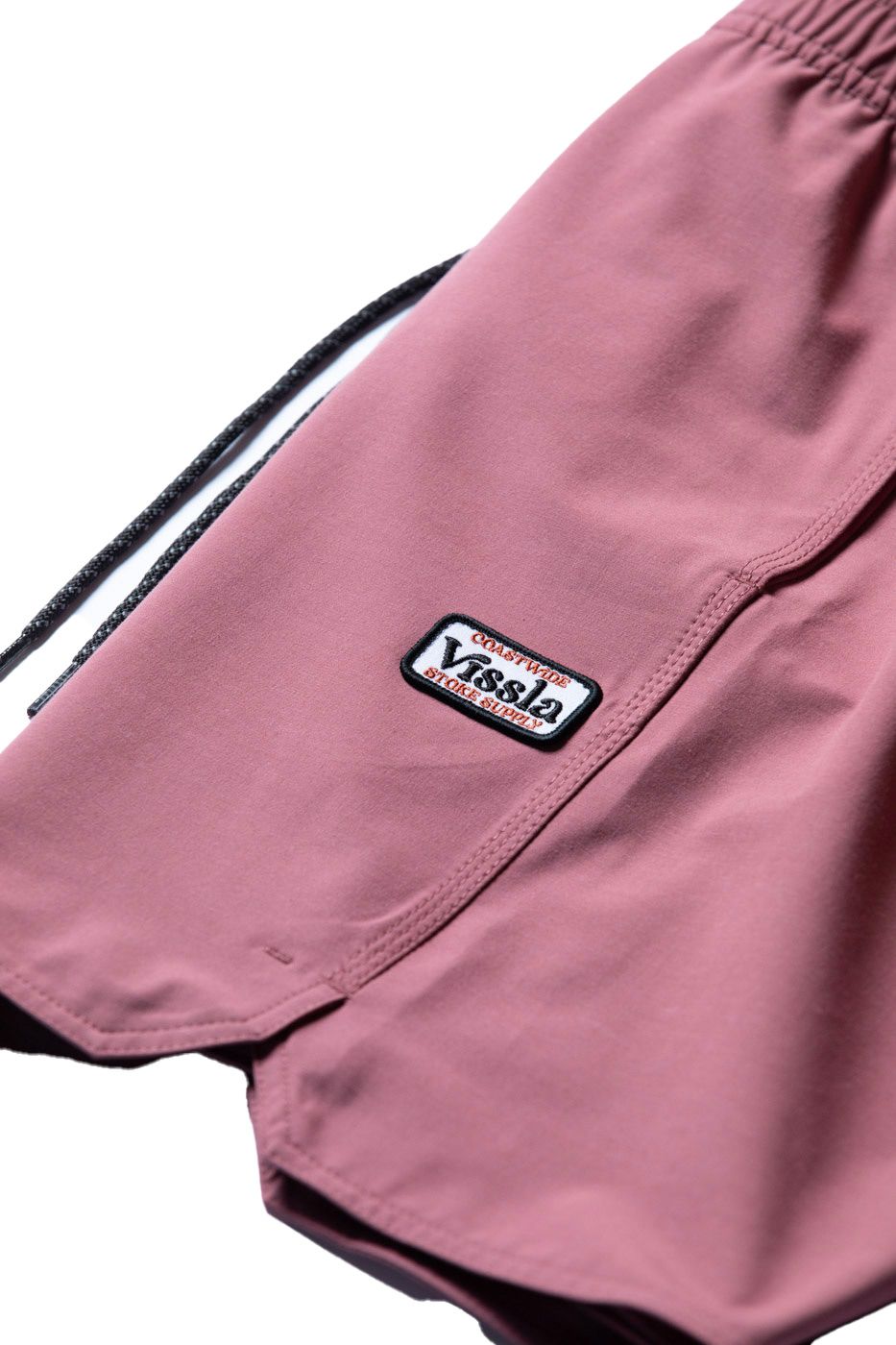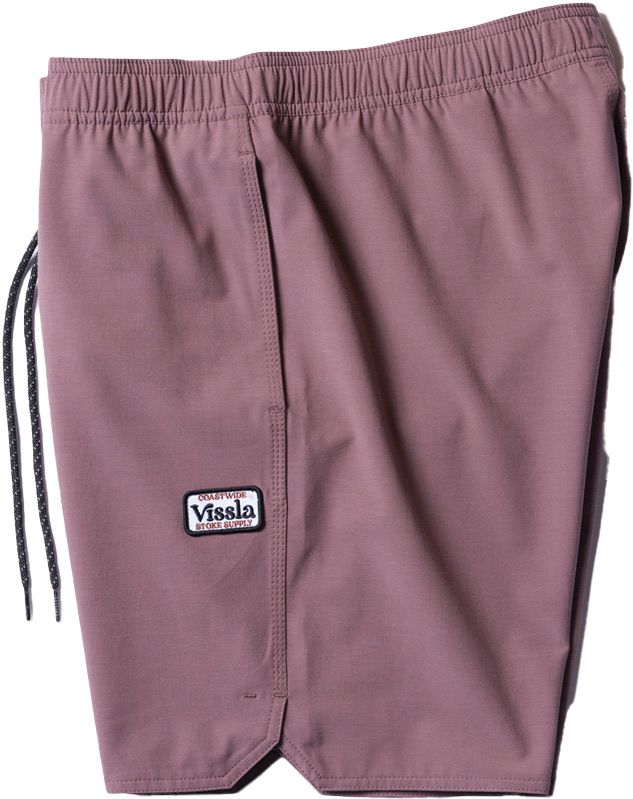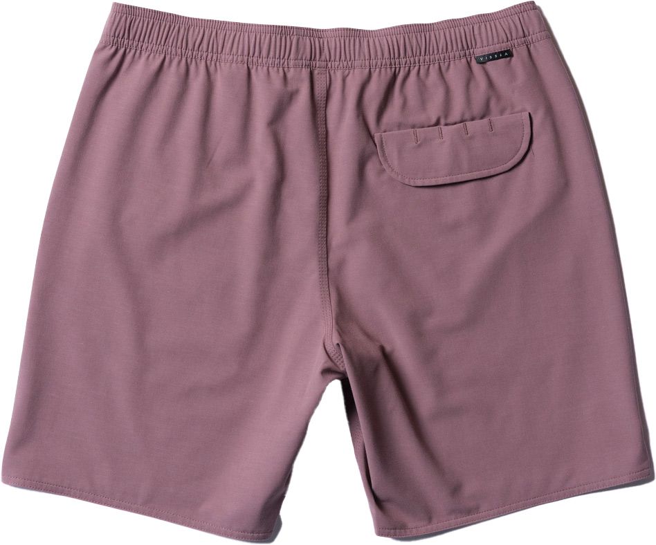 Maillot de bain Vissla Solid Sets 17.5″ Ecolastic Fig homme, extensible 4 directions, taille élastiquée ajustable, découpe latérale, tissu recyclé.