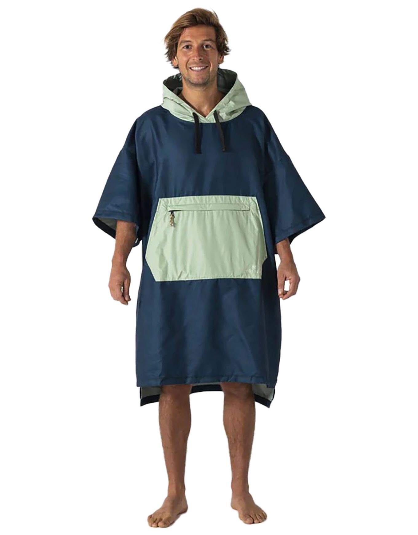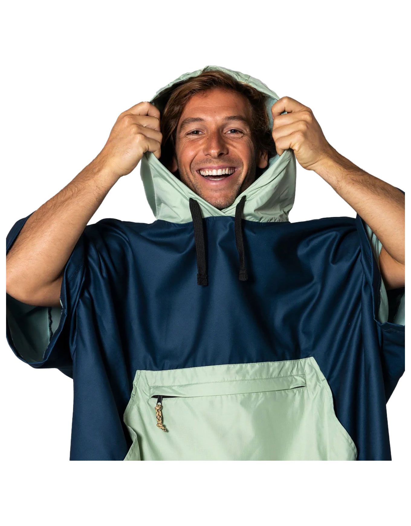 Voited Microfleece Poncho Ocean Navy / Cameo Green