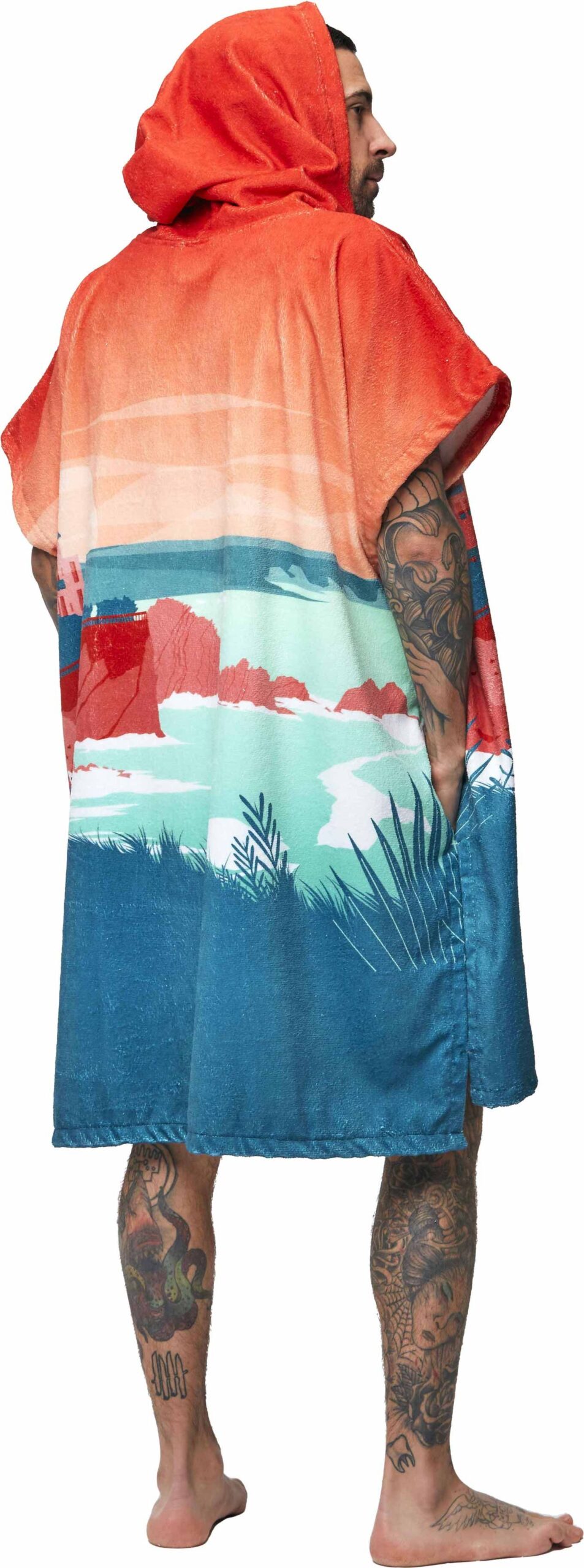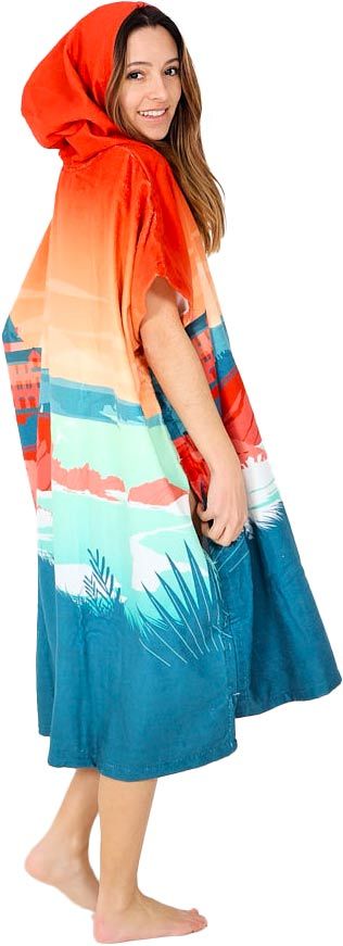After Essentials Destination poncho de bain en tissu-éponge ultra-absorbant, séchage rapide, enfilage aisé par grande capuche et ouvertures bras, poche frontale et accès mains latéraux.