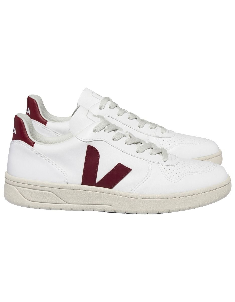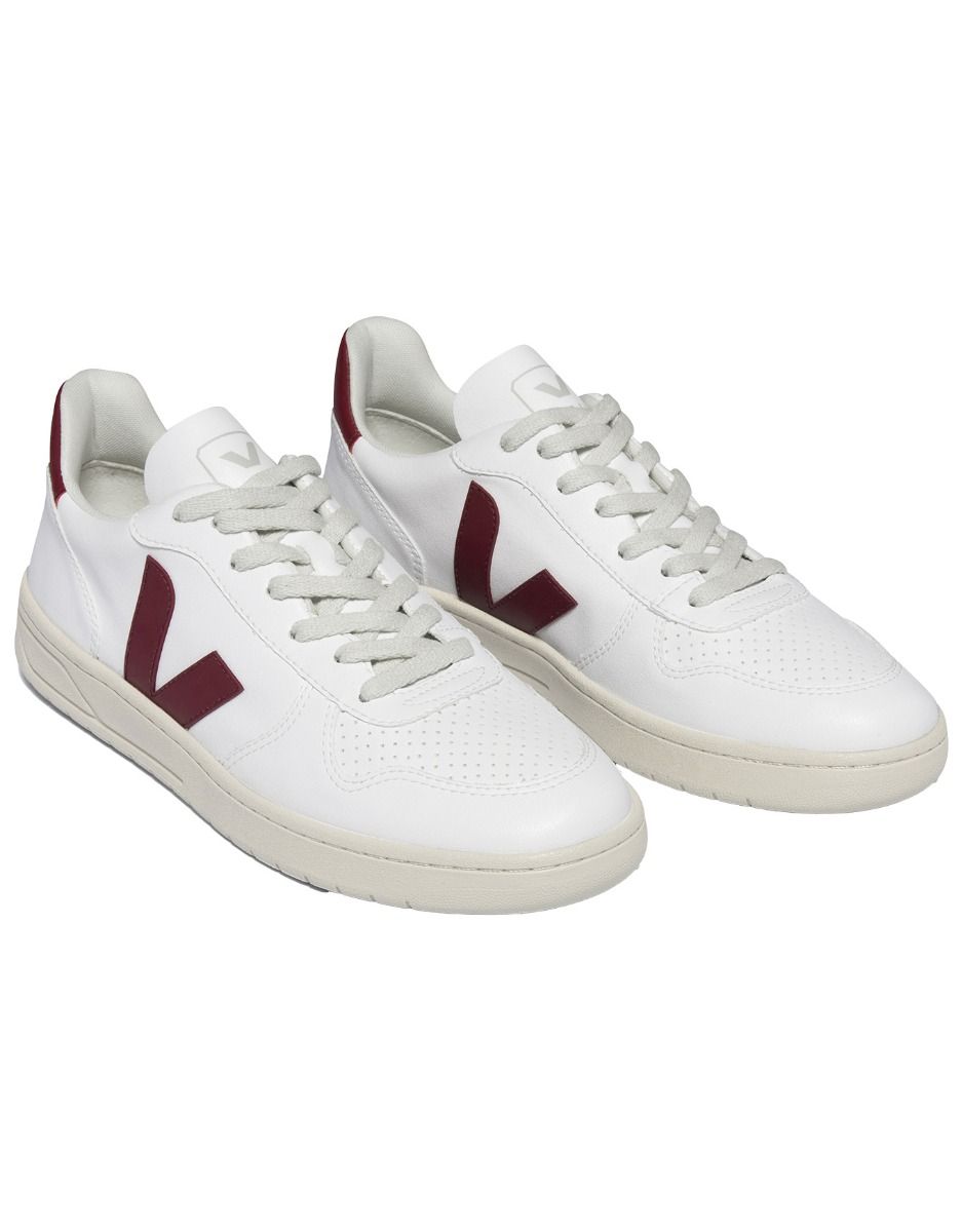 Sneakers femme Veja V-10 CWL White Marsala, éco-conçues en CWL vegan coton bio : légères, résistantes, confort citadin.