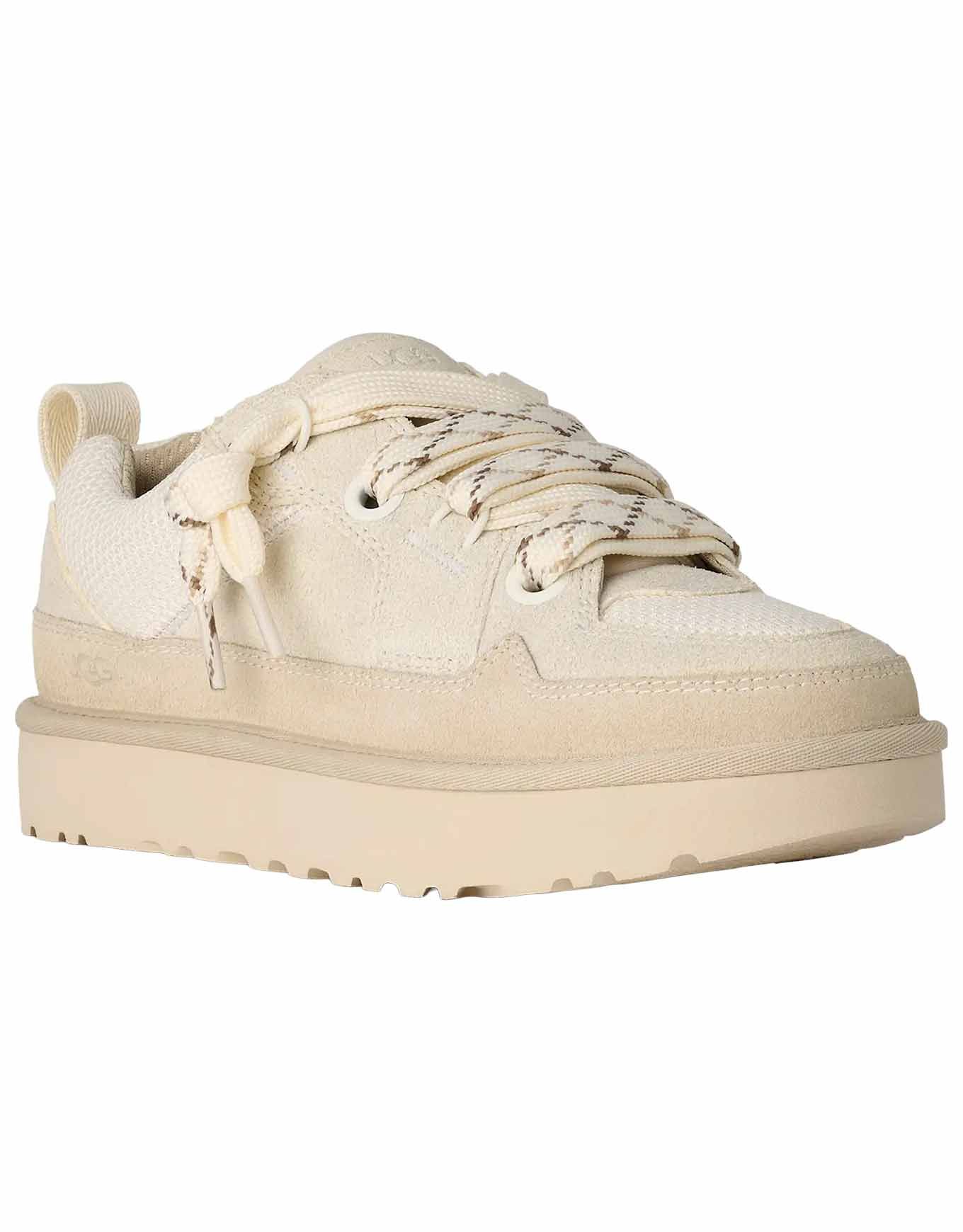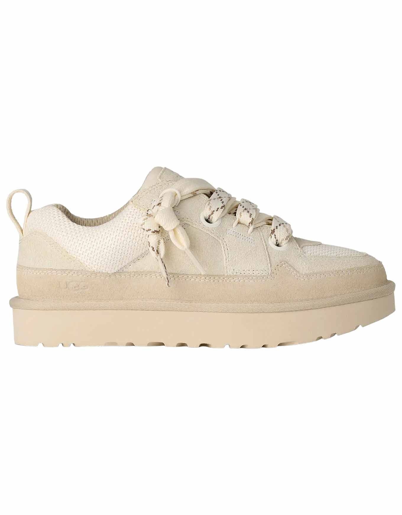 UGG Lo Lowmel Jasmine, baskets basses femme en mesh et suède recyclés, offrent style urbain et respirabilité estivale. Sugarsole™ biosourcée, languette rembourrée.