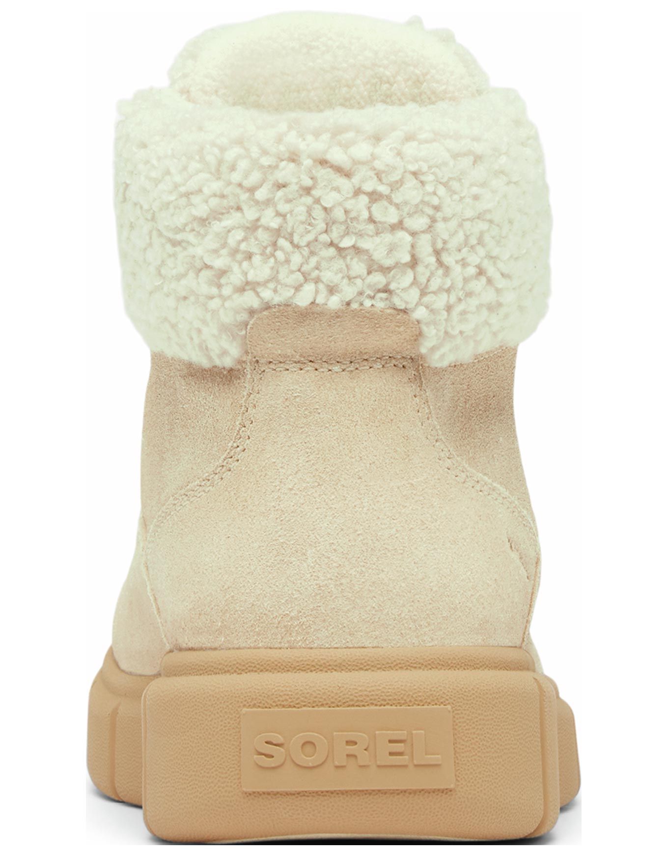 Bottines d’hiver Sorel Explorer III Nw Lace Wp femme en cuir suédé imperméable, isolation 100g, col peau de mouton synthétique, semelle légère EVA et adhérence caoutchouc pour chaleur et style urbain.
