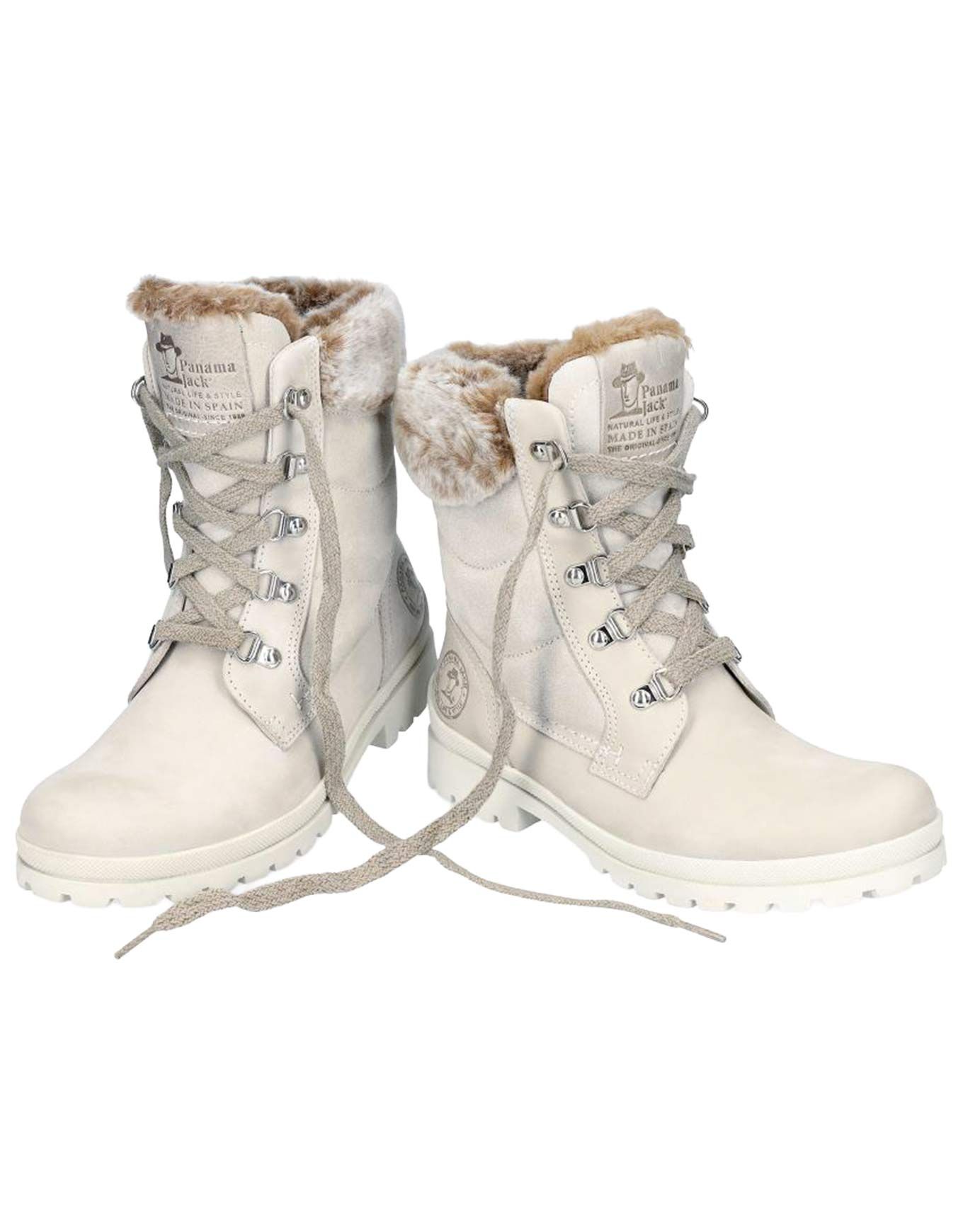 Bottines femme Panama Jack Tuscani B11 Napa Hielo/Ice en cuir nappa imperméable, doublure chaude jusqu’au col, semelle anatomique amovible et semelle extérieure caoutchouc naturel pour tenue urbaine ou escapades hivernales.