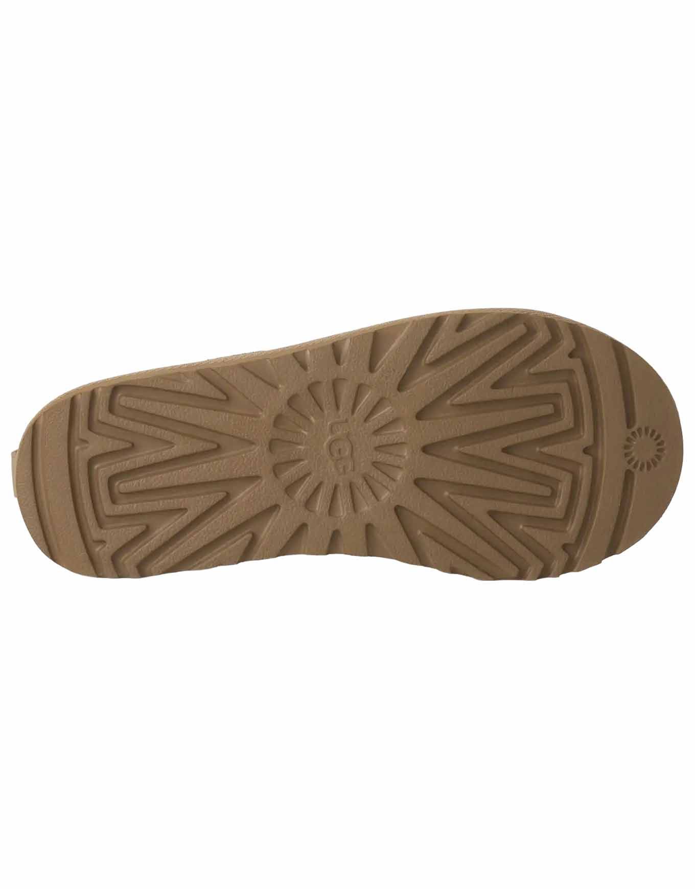 Une étiquette en cuir embossée du logo UGG® orne le talon, signe d’authenticité et d’élégance. Alliant légèreté et souplesse exceptionnelles, la semelle extérieure en EVA biosourcé à base de canne à sucre offre une démarche agréable tout en incarnant un choix respectueux de l’environnement.