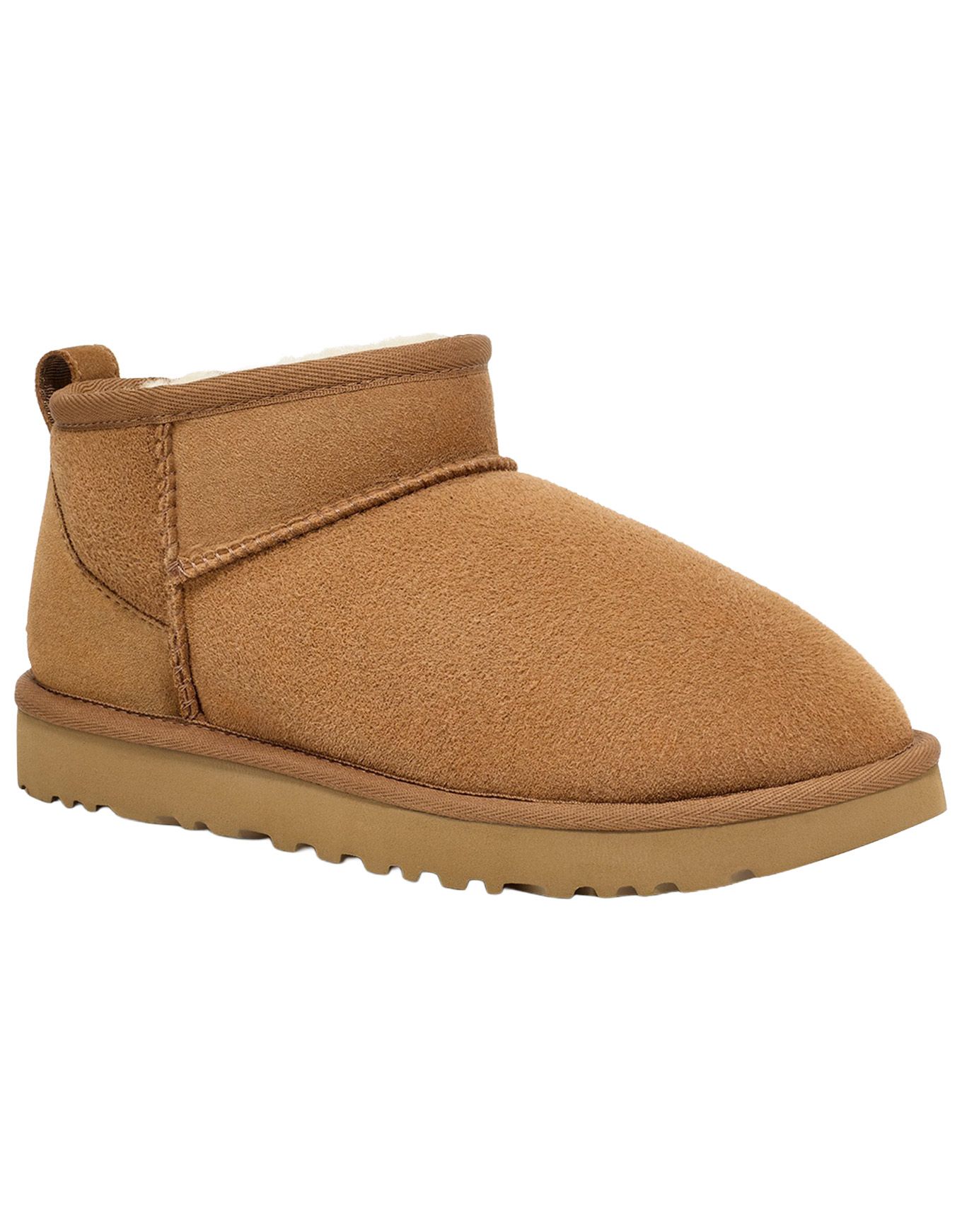 Les bottes UGG Classic Ultra Mini Chestnut pour femme allient peau de mouton double face et semelle Treadlite by UGG™ pour chaleur, amorti et adhérence en hiver.