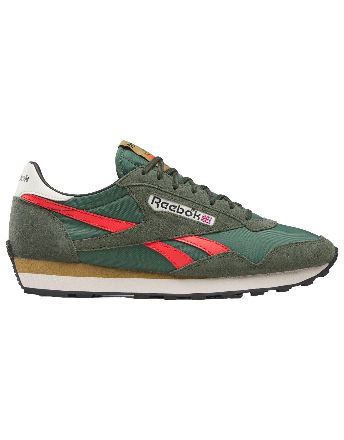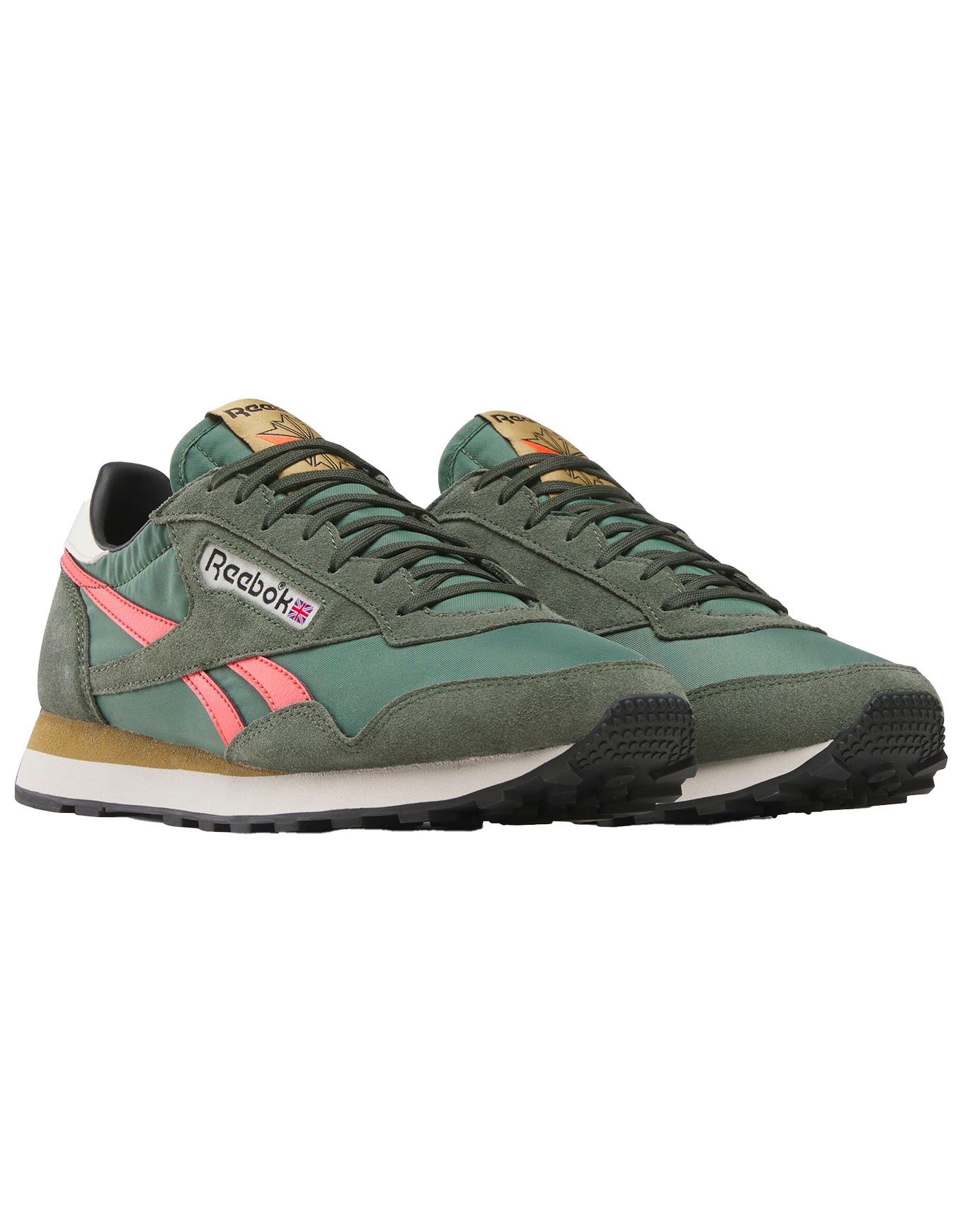 Chaussures unisexes Reebok Aztec II Grit Green en nylon et cuir suédé, semelle caoutchouc robuste pour adhérence et souplesse en ville.