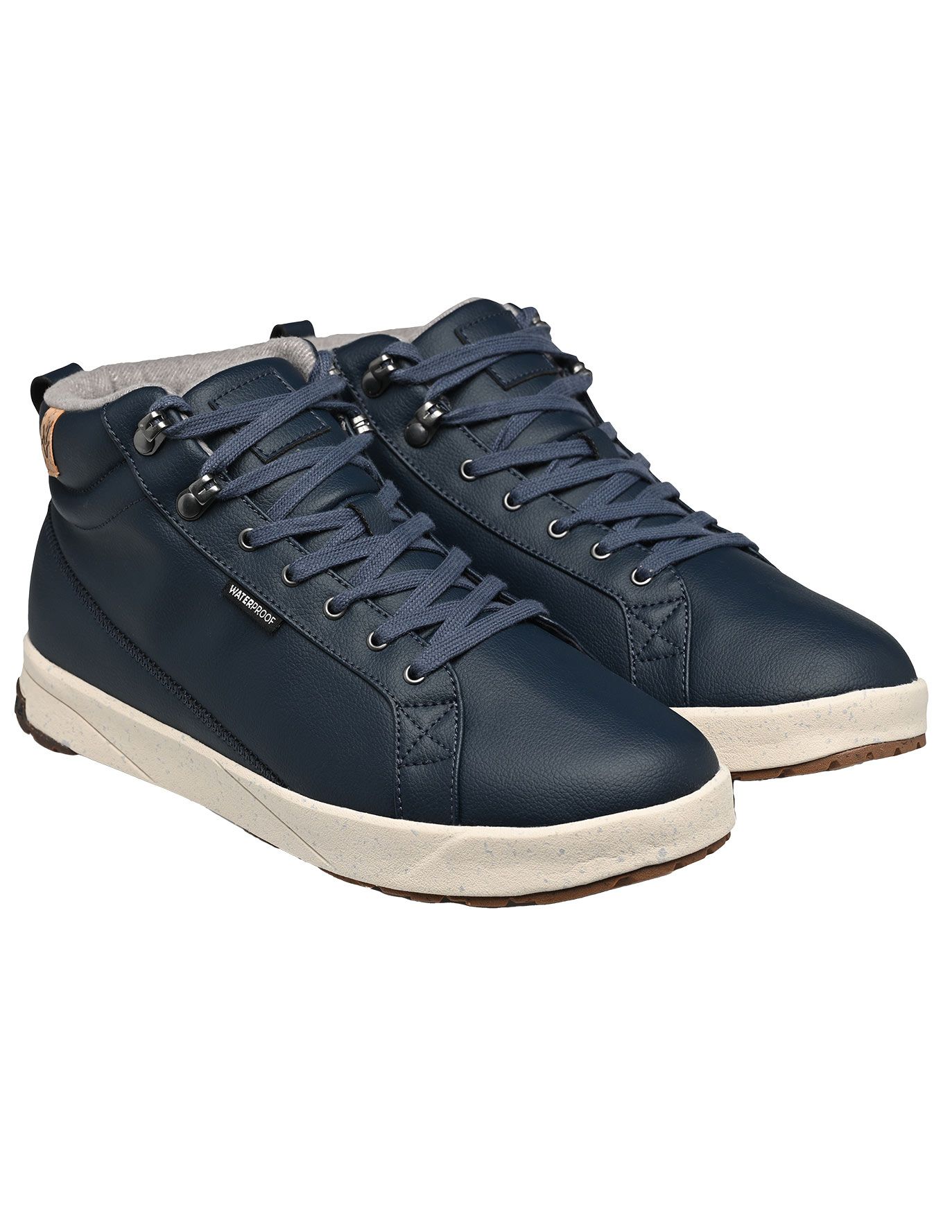 Chaussure Saola Bergen Waterproof Navy, look urbain imperméable avec membrane Nature-Tex, matériaux recyclés et naturels, semelle EVA pour un amorti souple.