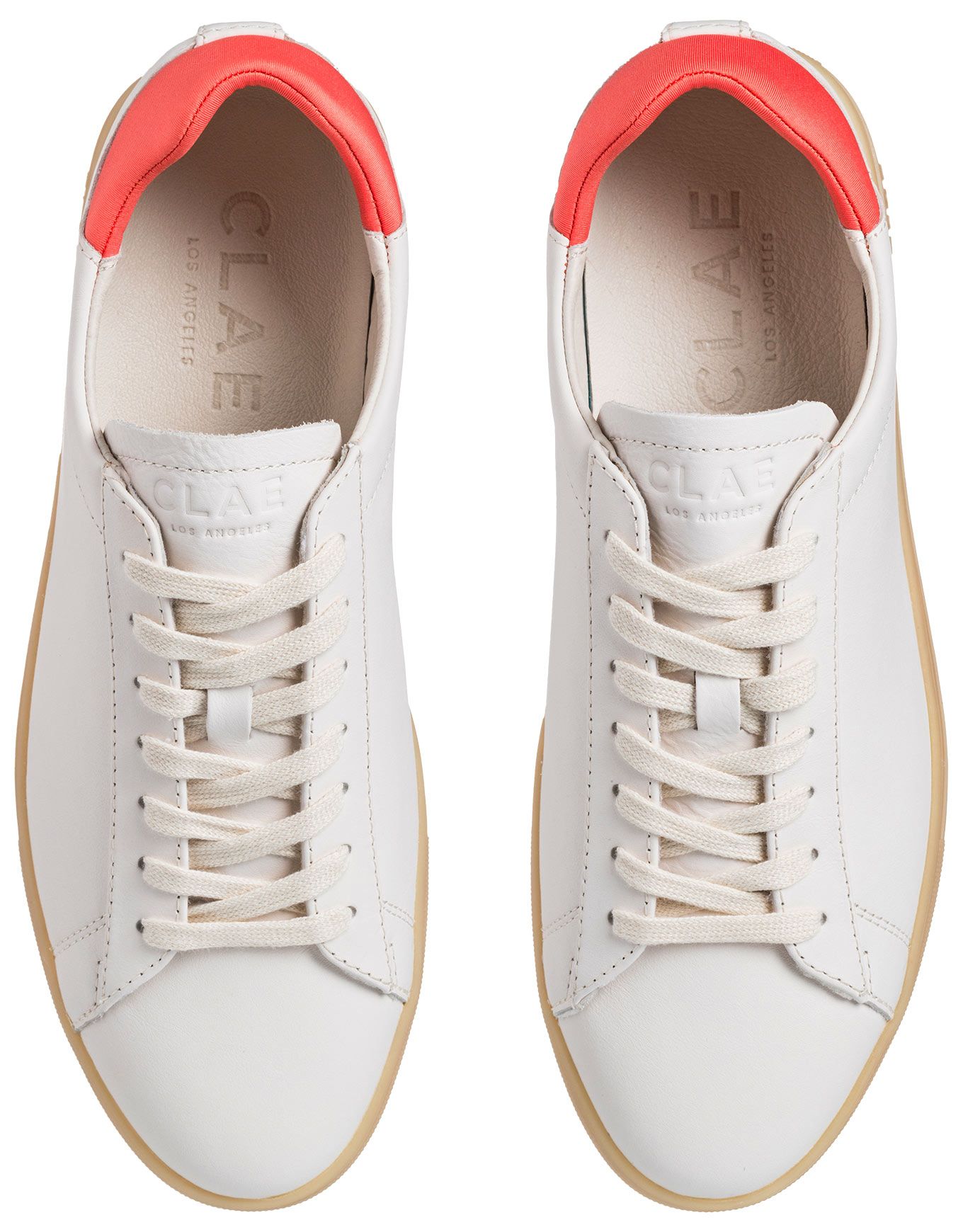 Clae Bradley Offwhite Camellia Lt Nat Gum, baskets homme en cuir italien cousu main, allient élégance minimaliste et confort quotidien via semelle intérieure amortissante et extérieure caoutchouc Standard Premium.
