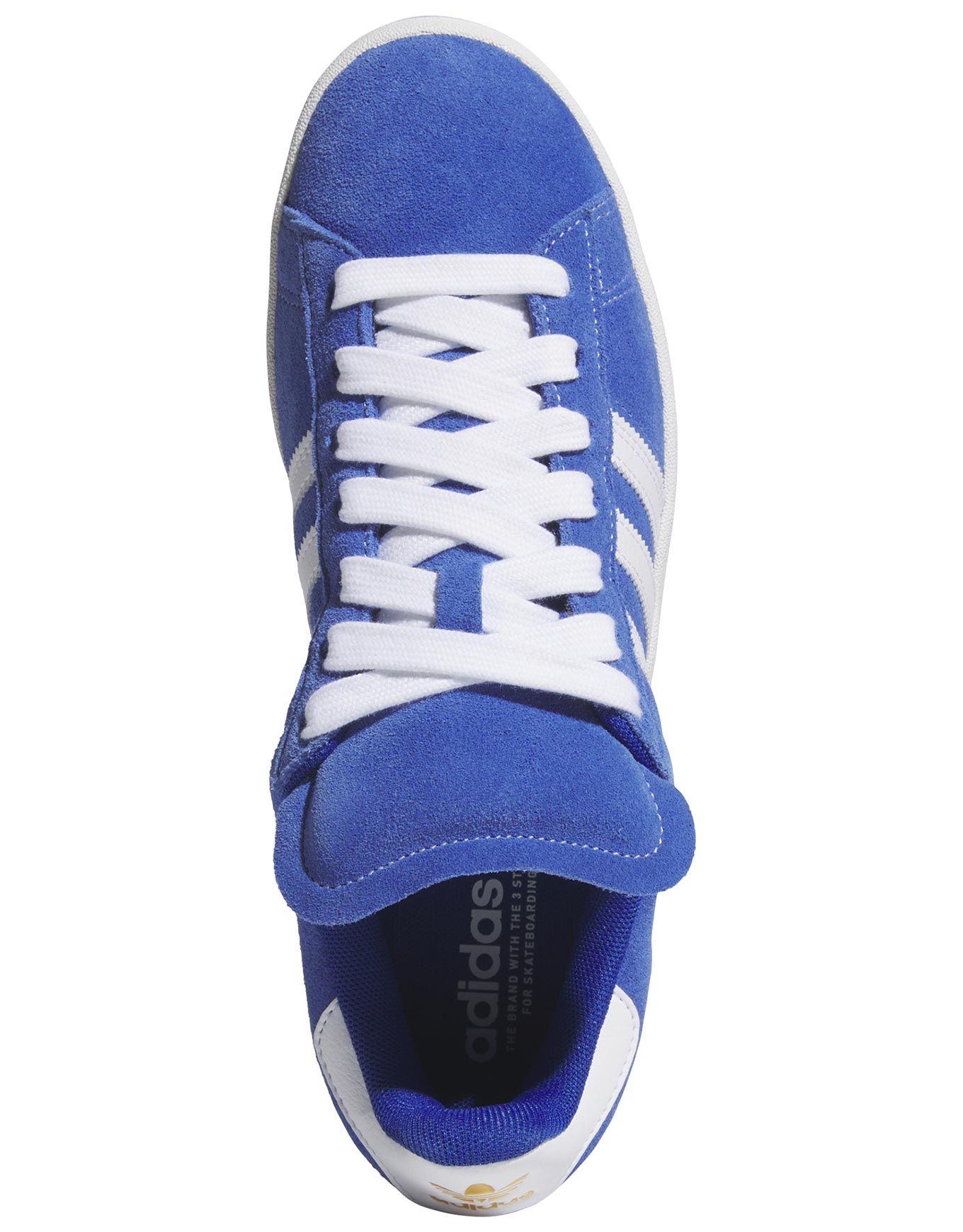 Adidas Originals Campus ADV Royal Blue/Footwear White/Gold Metallic est une chaussure de skate moderne en suède offrant amorti EVA, semelle Adiprene et adhérence renforcée.