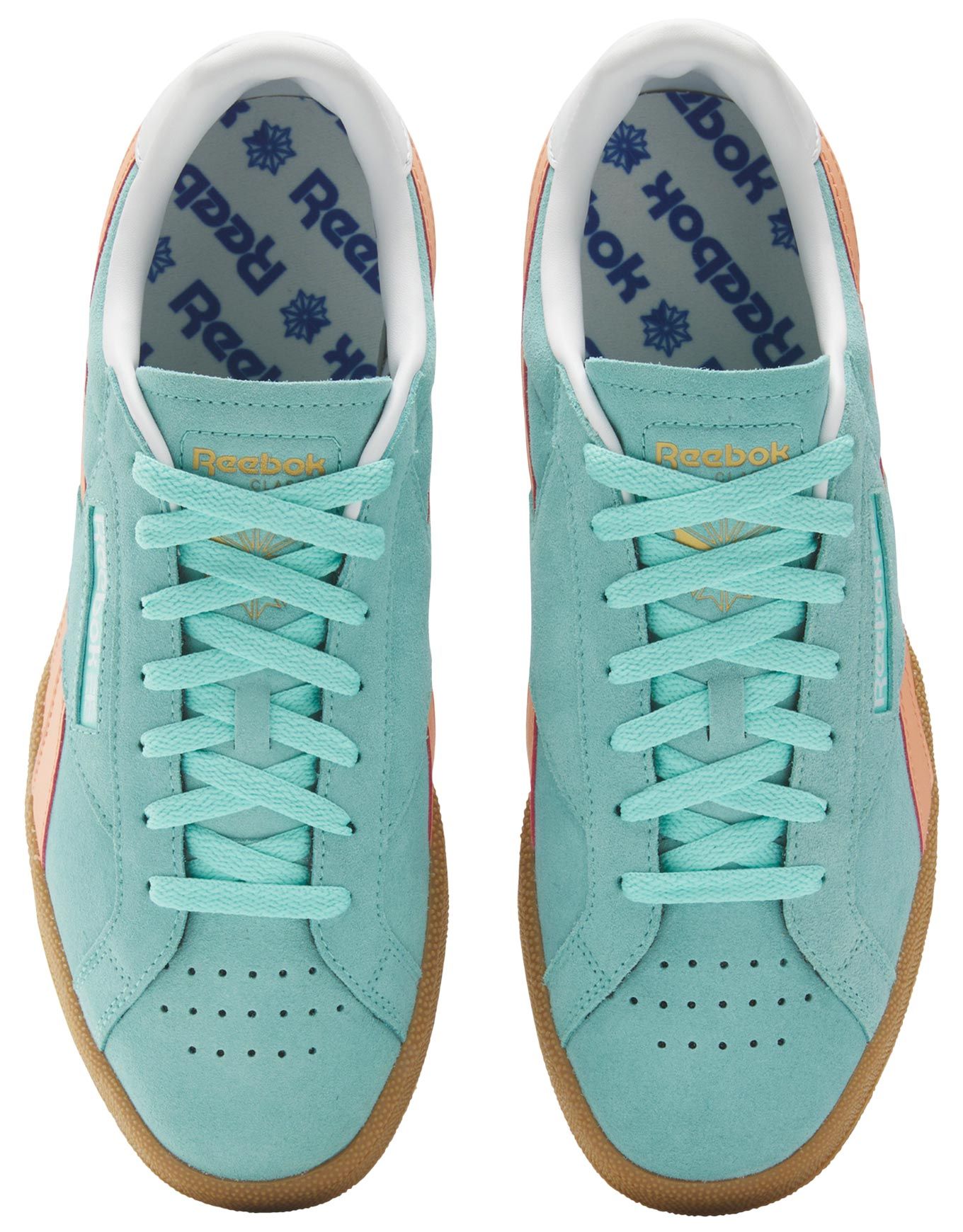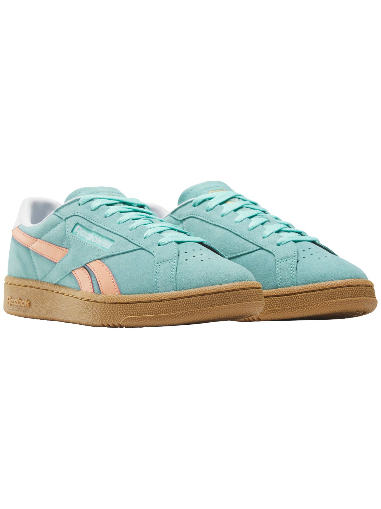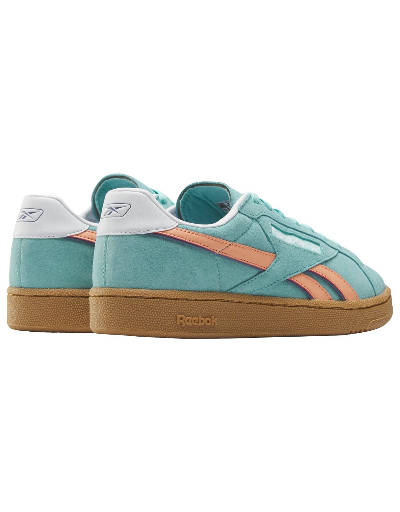 Les baskets unisexes Reebok Club C Grounds UK Ai Aqua Sunkissed Orange Gum conjuguent look rétro des années 80 et finitions soignées en daim souple, cuir et caoutchouc pour un confort durable et un style sportif affirmé.