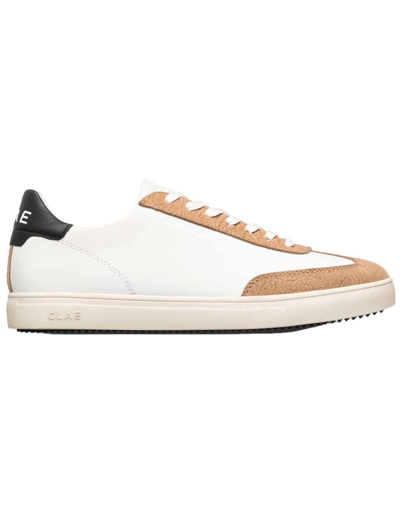 Clae Deane White Starfish Black, baskets basses homme en cuir Nappa italien, allient durabilité et design épuré. Semelle extérieure caoutchouc Premium, coussin intérieur pour un confort quotidien.