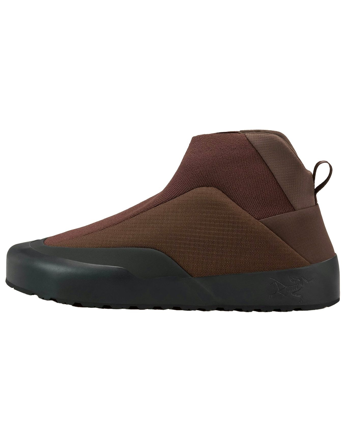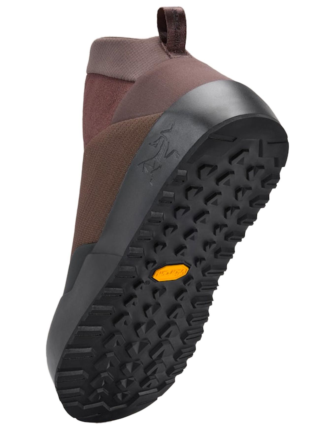 Chaussures mi-hautes Arc’teryx Kragg Insulated Carob/Black pour homme, spacieuses en Spacermesh respirant avec isolation Primaloft, zip talon, bande élastique, semelle Vibram Megagrip, renforts TPU pour adhérence, maintien et durabilité.