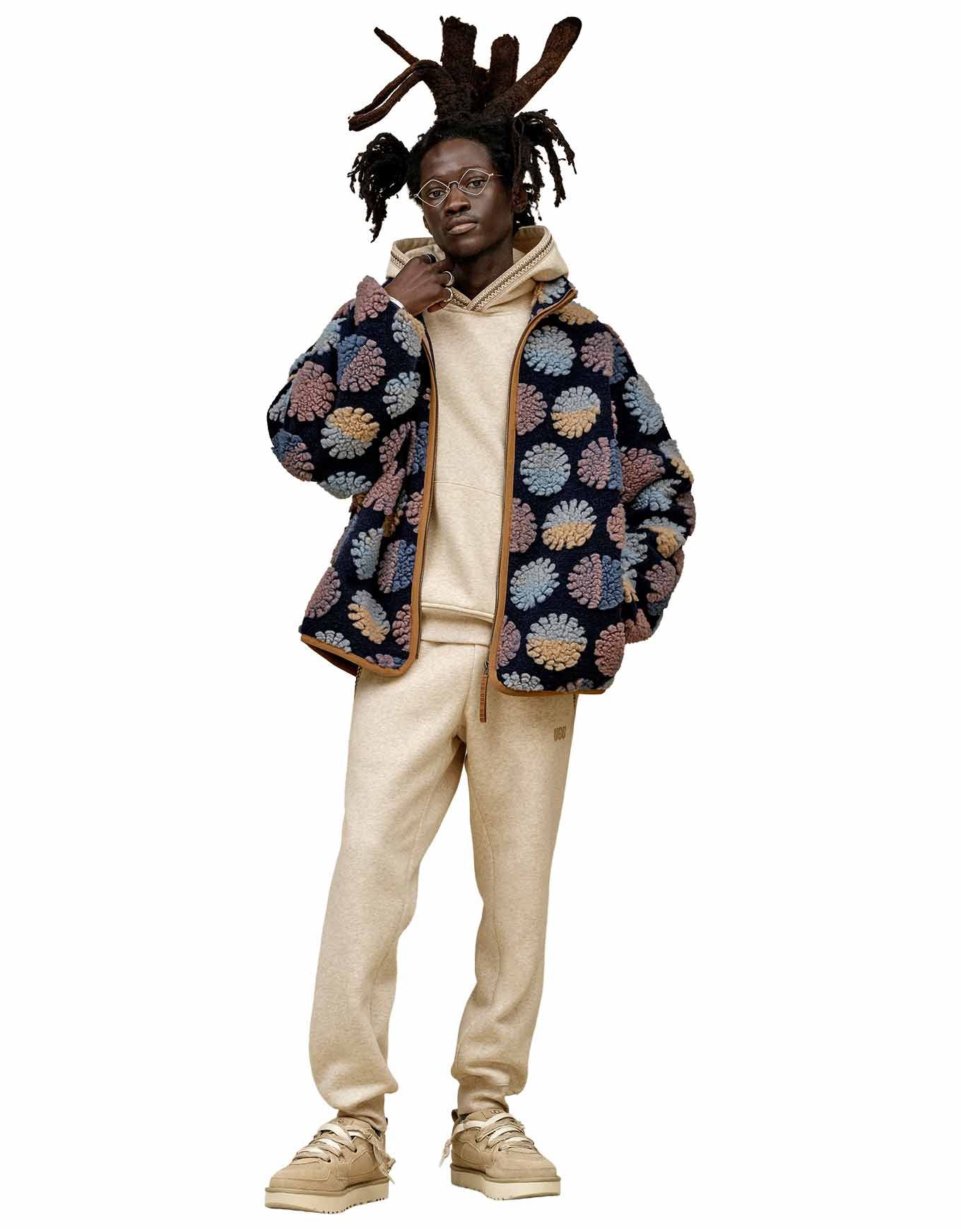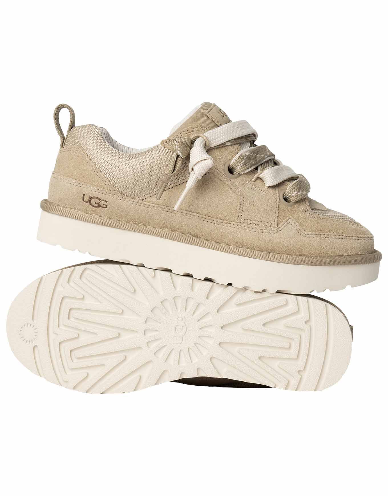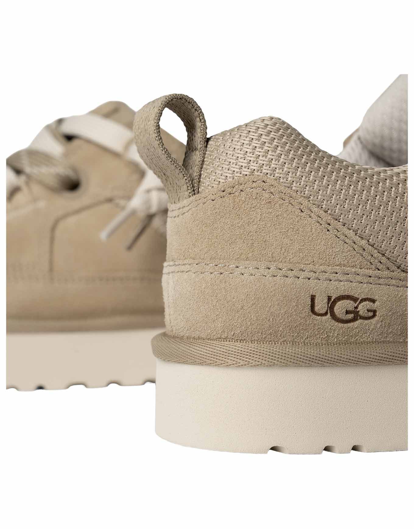 UGG Lo Lowmel Mustard Seed, baskets basses homme en mesh recyclé et suède, offrent style urbain, respirabilité et confort grâce à sa languette rembourrée et sa semelle biosourcée Sugarsole™.