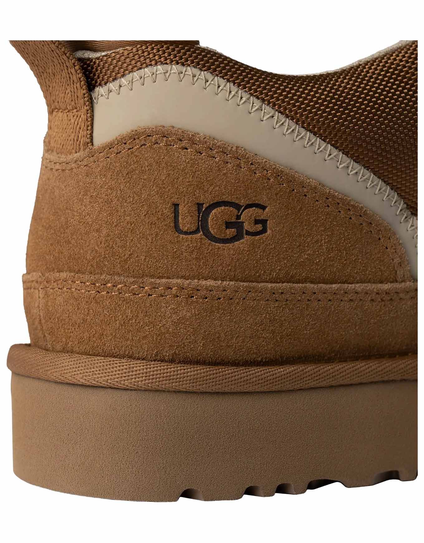 Avec les Lowmel Chestnut pour homme, UGG propose une chaussure qui se plie à toutes vos activités. Héritée du modèle Neumel, elle combine une toile tissée et du daim souple pour une polyvalence maximale. L’intérieur est doublé de laine UGGplush™, assurant un confort chausson aussi bien en intérieur qu’en extérieur. La marque a privilégié des matériaux durables : toile recyclée, lacets en matière recyclée et semelle extérieure à base de canne à sucre.