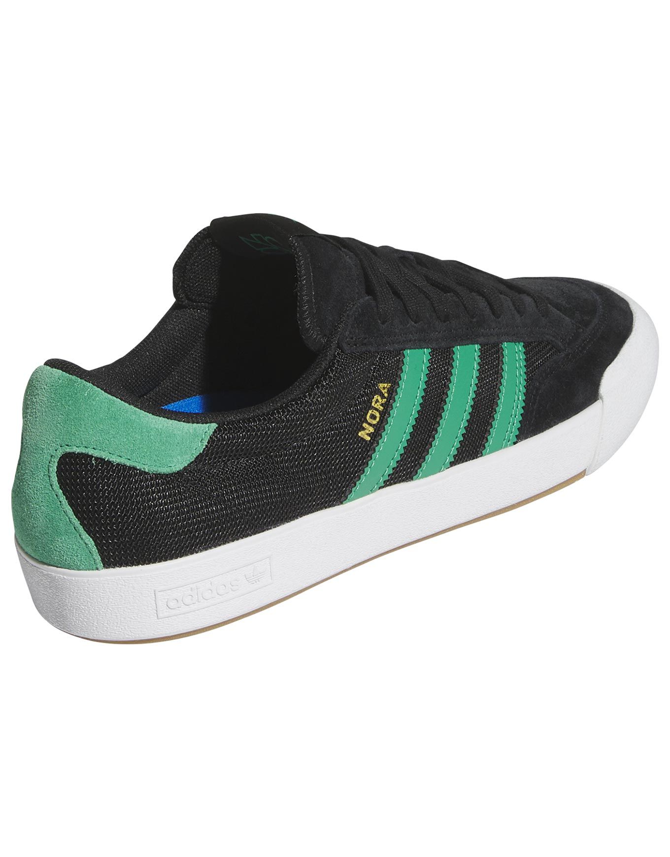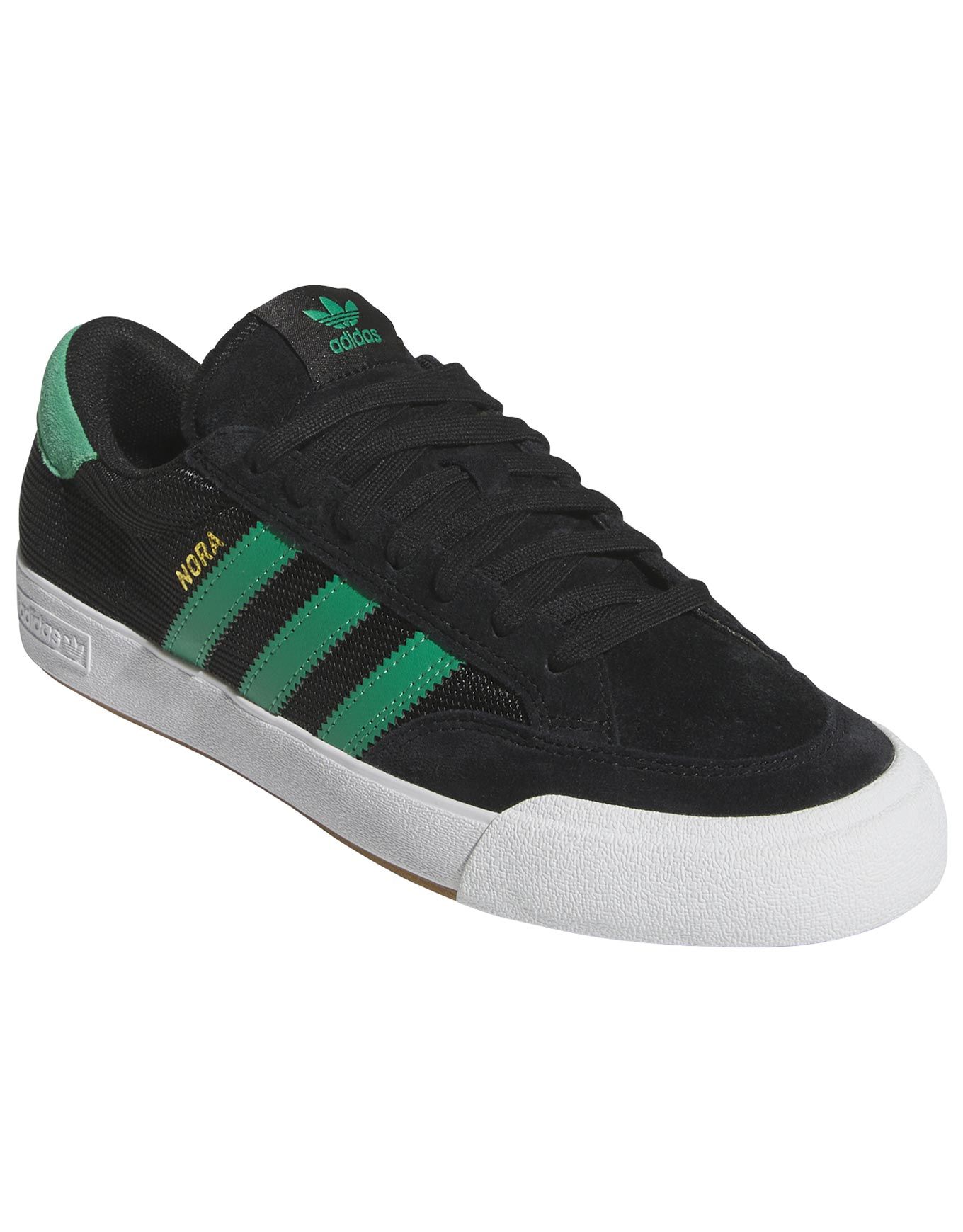 Les Nora Core Black/Court Green/Footwear White d’Adidas Originals sont des chaussures pour homme au style vintage, pensées pour les skateurs. Initialement conçues pour le tennis, elles ont été retravaillées en collaboration avec Nora Vasconcellos pour répondre aux exigences du skateboard.