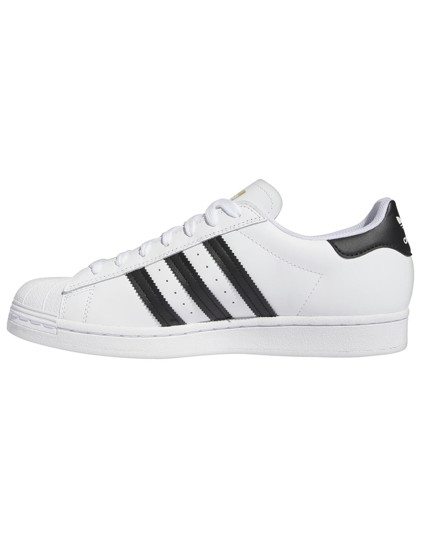 Adidas Originals Superstar ADV Footwear White/Core Black/Footwear White, baskets unisexes héritées du basketball, offrent style streetwear et protection du shell-toe. Cuir premium, semelle Cupsole caoutchouc ergonomique, durabilité et accroche skate.