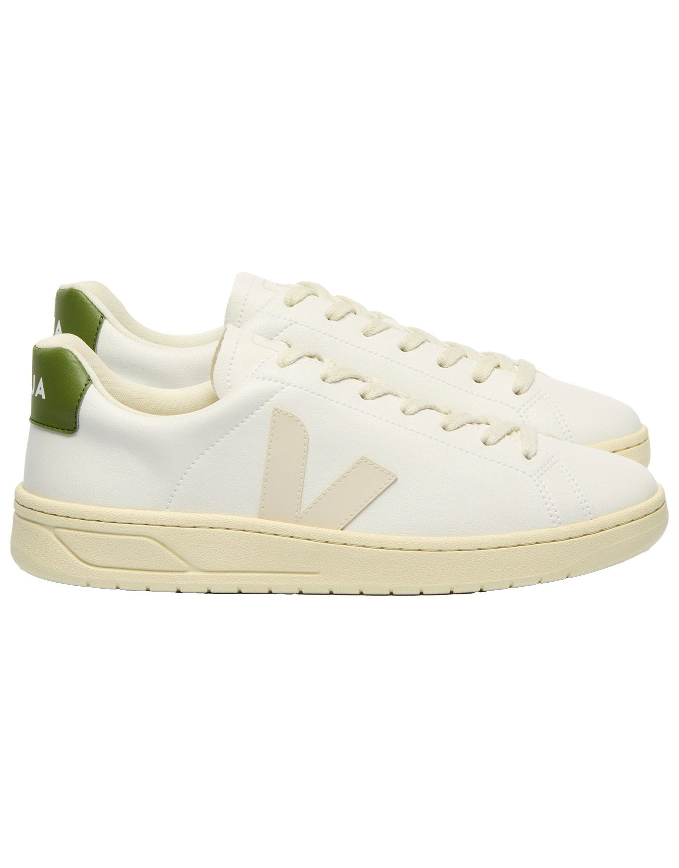 Chaussures Veja Urca Pierre Kiwi pour homme combinant style streetwear et écologie via coton biologique et caoutchouc sauvage d’Amazonie.