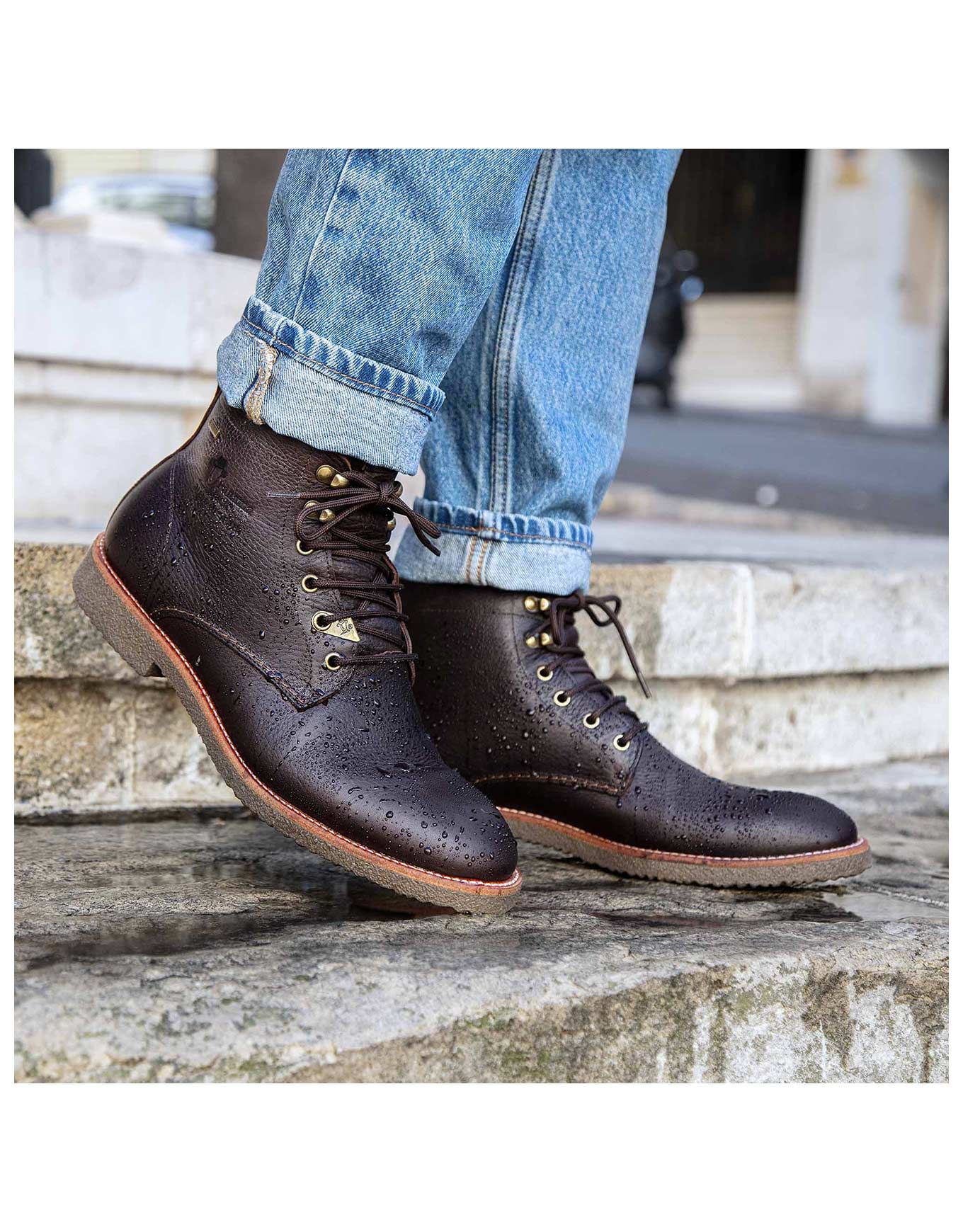 Entièrement produites en Espagne, ces bottines témoignent d’un savoir-faire technique de qualité. La marque s’engage par ailleurs dans une démarche éthique : certification durable du cuir par le Leather Working Group® (LWG). Production locale, emballages en carton recyclé et recyclable caractérisent cet engagement, faisant de ce modèle un choix responsable autant que performant.
