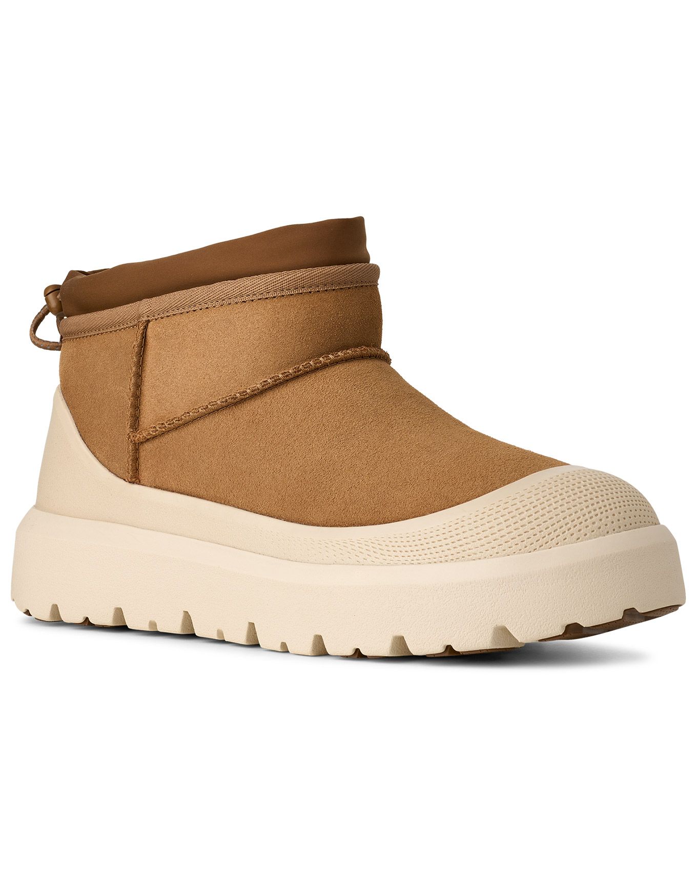UGG Classic Ultra Mini Weather Hybrid Chestnut Whitecap, bottes hiver homme : coutures étanches, daim imperméable, tenue -20 °C, doublure UGGplush™ 17 mm laine recyclée, semelle légère EVA biosourcée et adhérence Spider Rubber®.