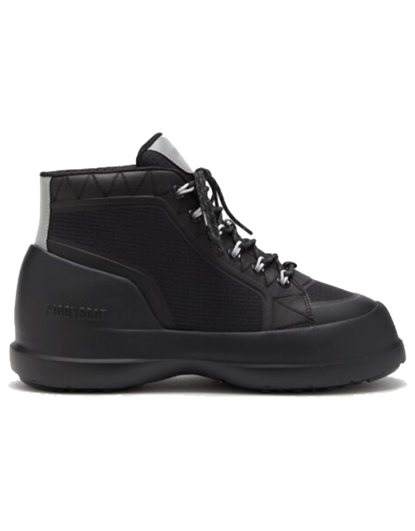 Moon Boot Luna Trek Mid Nylon Black, chaussure hiver homme chaude et imperméable, offre isolation, légèreté et adhérence en ville ou sur neige.