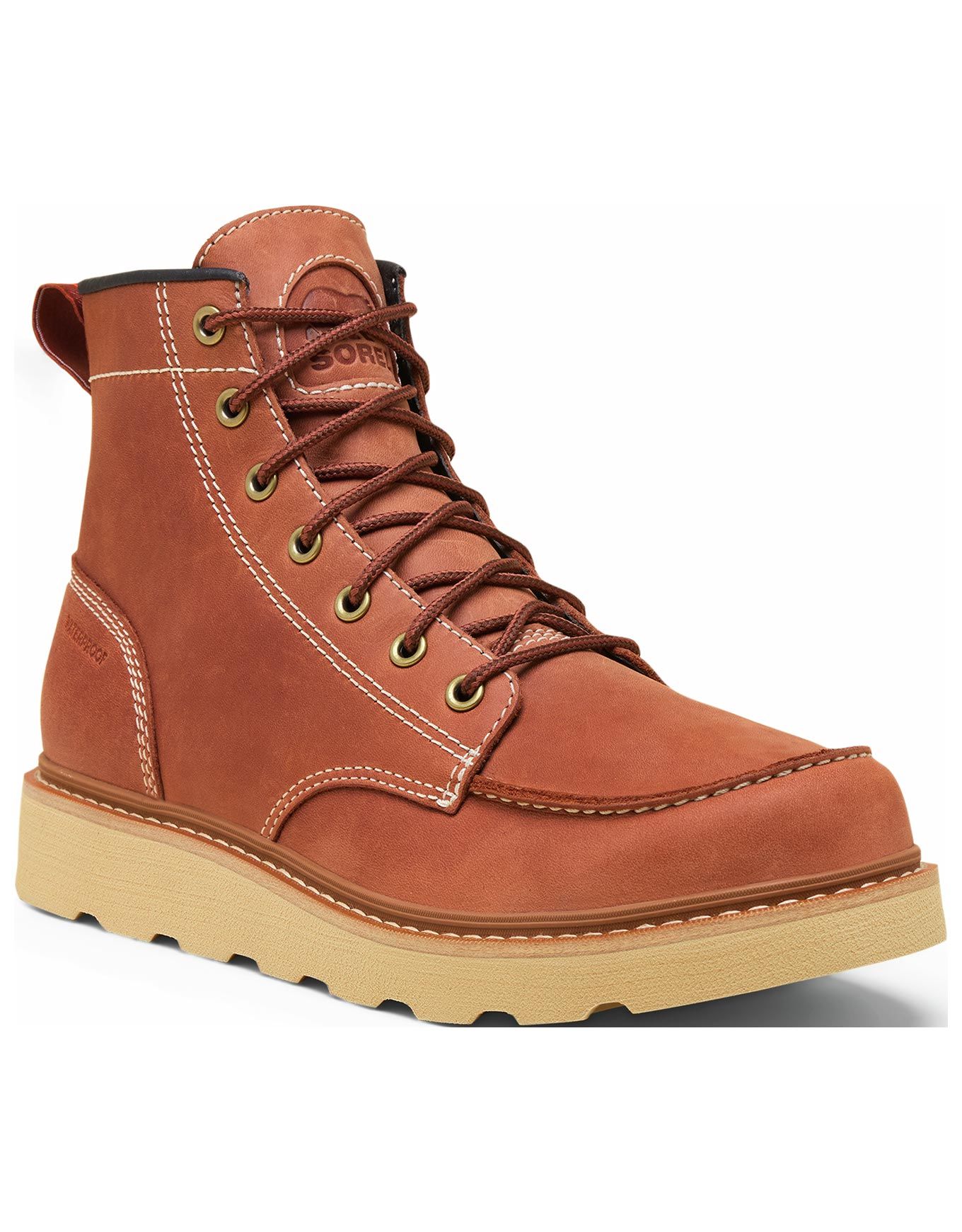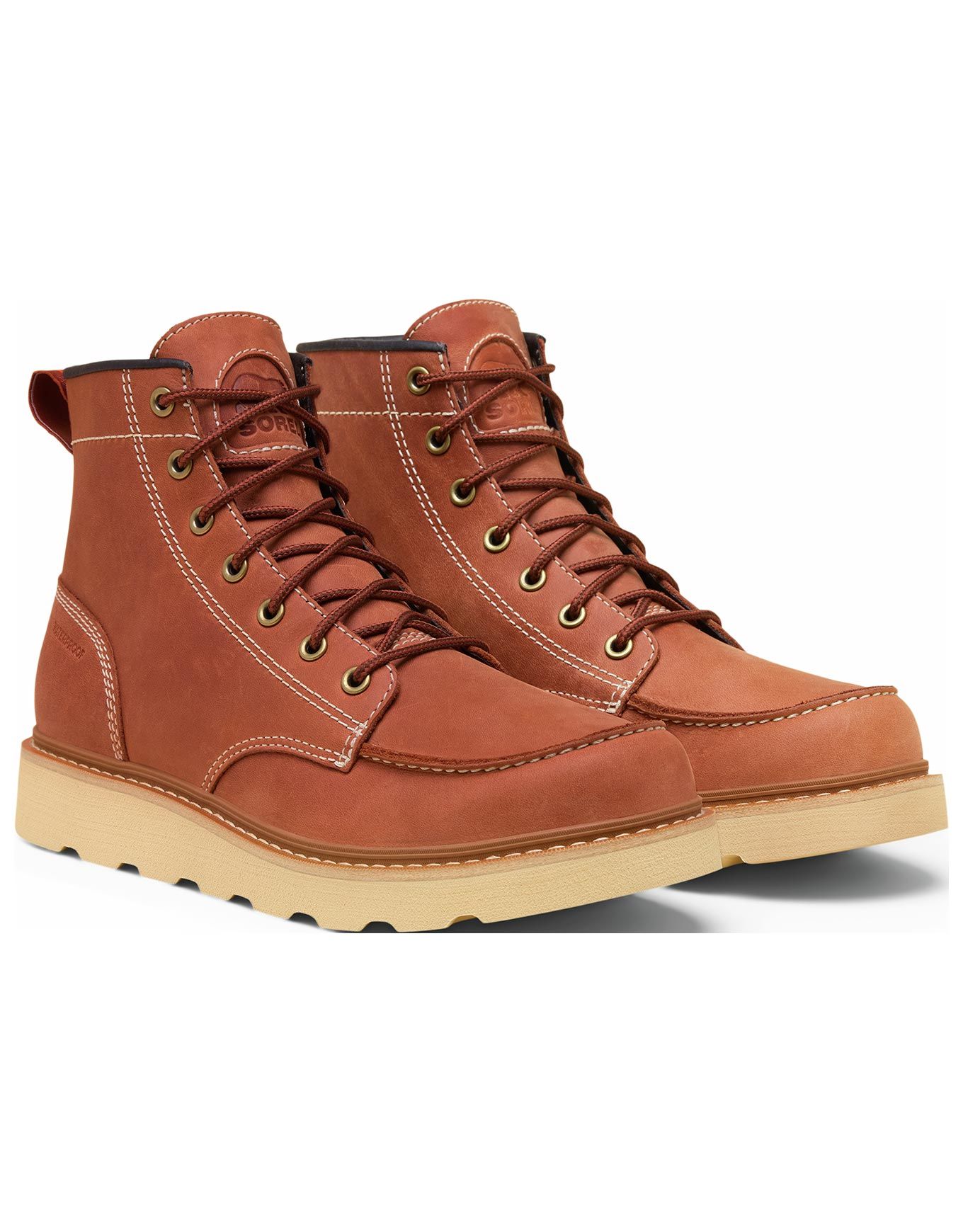 Sorel Slabtown 62′ Moc WP M Rustic Brown Ceramic, mocassin-botte homme imperméable en cuir avec semelle CUSHGRIP™, confort EVA et adhérence urbaine.