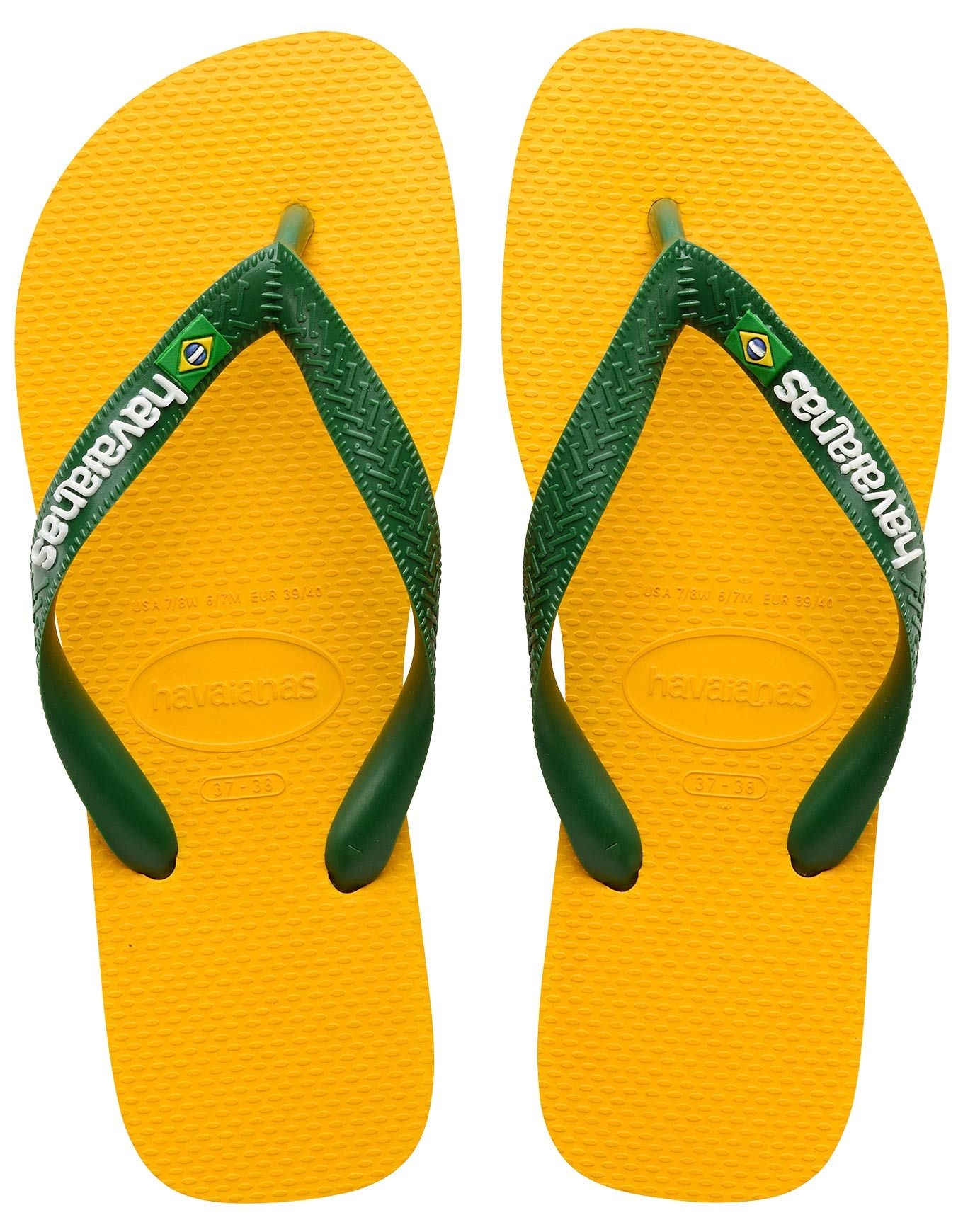 Les tongs Brasil Logo Pop Yellow signées Havaianas surfent sur la tendance grâce à leur style unique et authentique ! Si le Brésil évoque souvent le vert et le jaune, le pays regorge en réalité d’un arc-en-ciel de teintes que l’on retrouve dans chaque création de la marque. Ornées du drapeau brésilien et d’un logo bien visible, ces sandalettes vous emportent instantanément sous les tropiques ! La semelle en caoutchouc 100 % made in Brasil assure confort, robustesse et légèreté. Imperméables à l’eau et à la chaleur, elles offrent en prime une tenue antidérapante ! Découvrir les catégories associées Sandales et tongs Chaussures homme