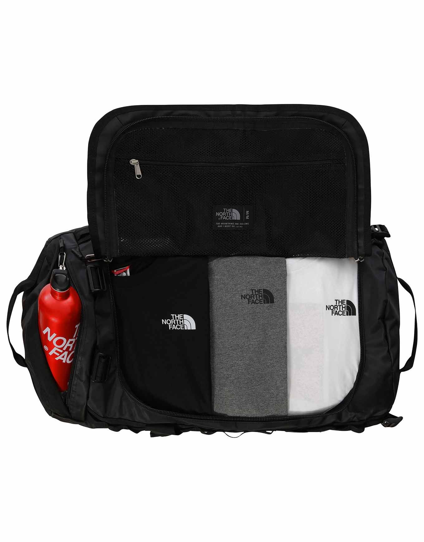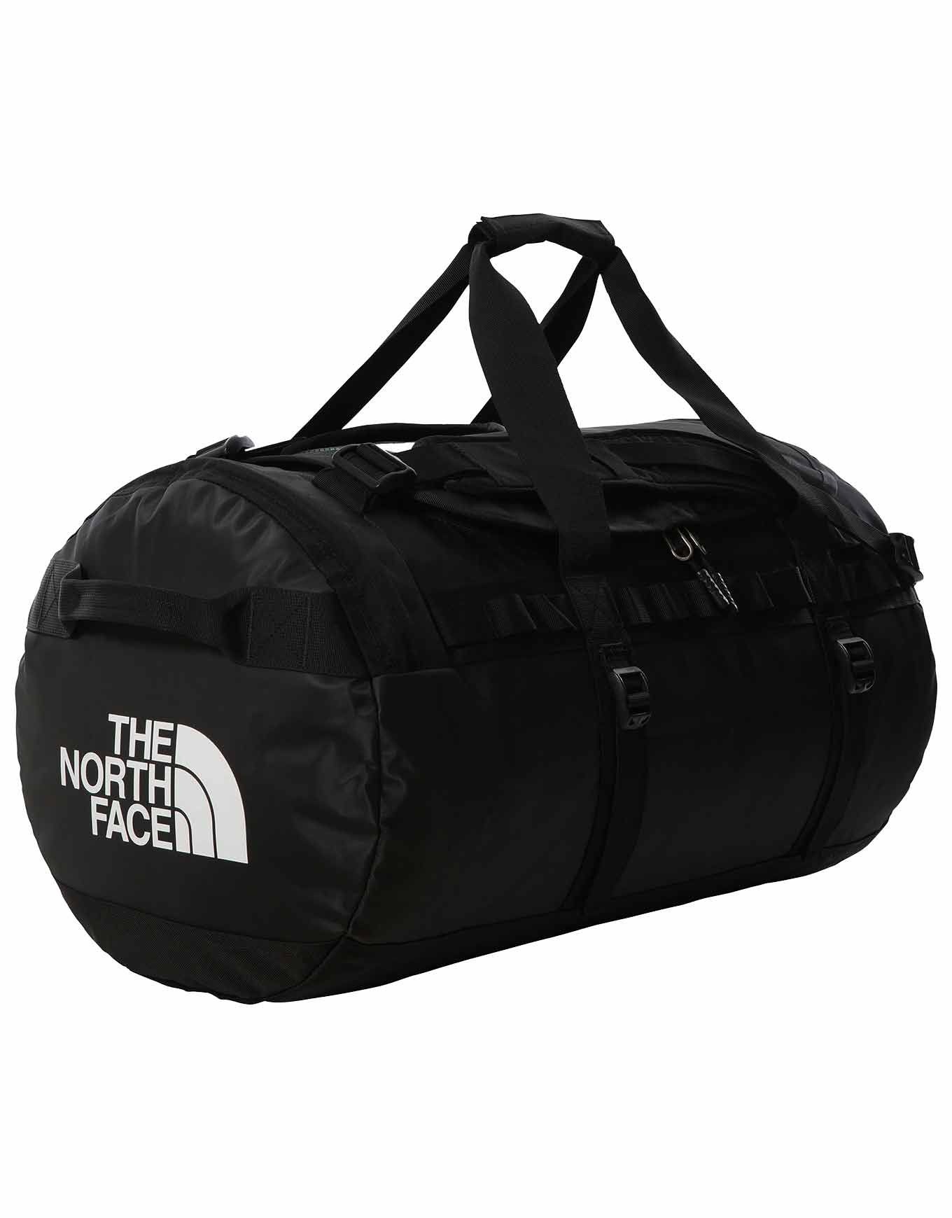 The North Face Base Camp Duffel M TNF Black est un sac de voyage 71 L en nylon balistique résistant à l’eau, convertible en sac à dos par bretelles ergonomiques amovibles, avec compartiment chaussures/sales et quatre sangles de compression.