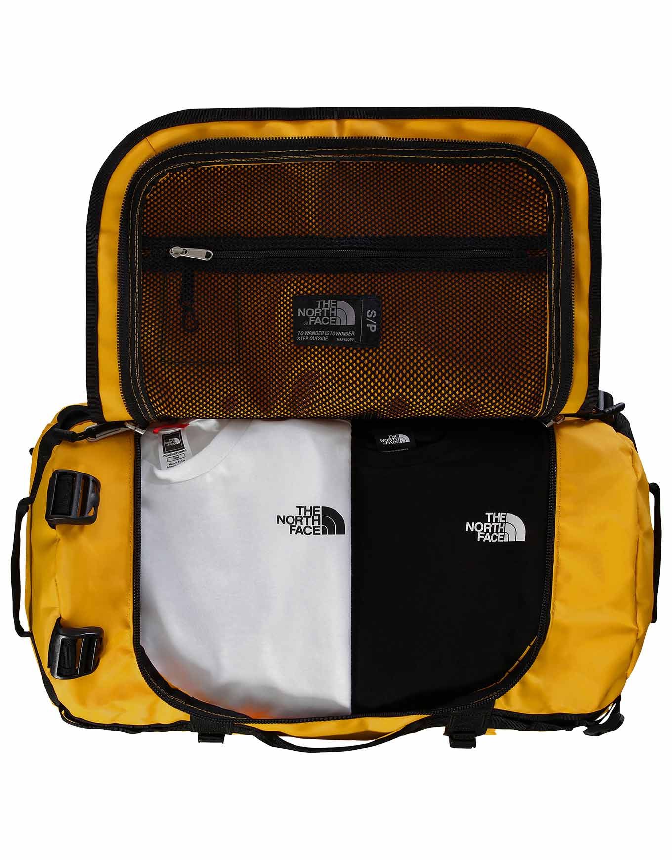 The North Face Base Camp Duffel S 50 L Summit Gold, sac de voyage en nylon balistique résistant à l’eau, se porte en main ou à dos grâce à ses poignées rembourrées et bretelles ergonomiques amovibles, s’ouvrant intégralement pour un accès rapide à ses 50 litres, avec poche chaussures et filet d’organisation.