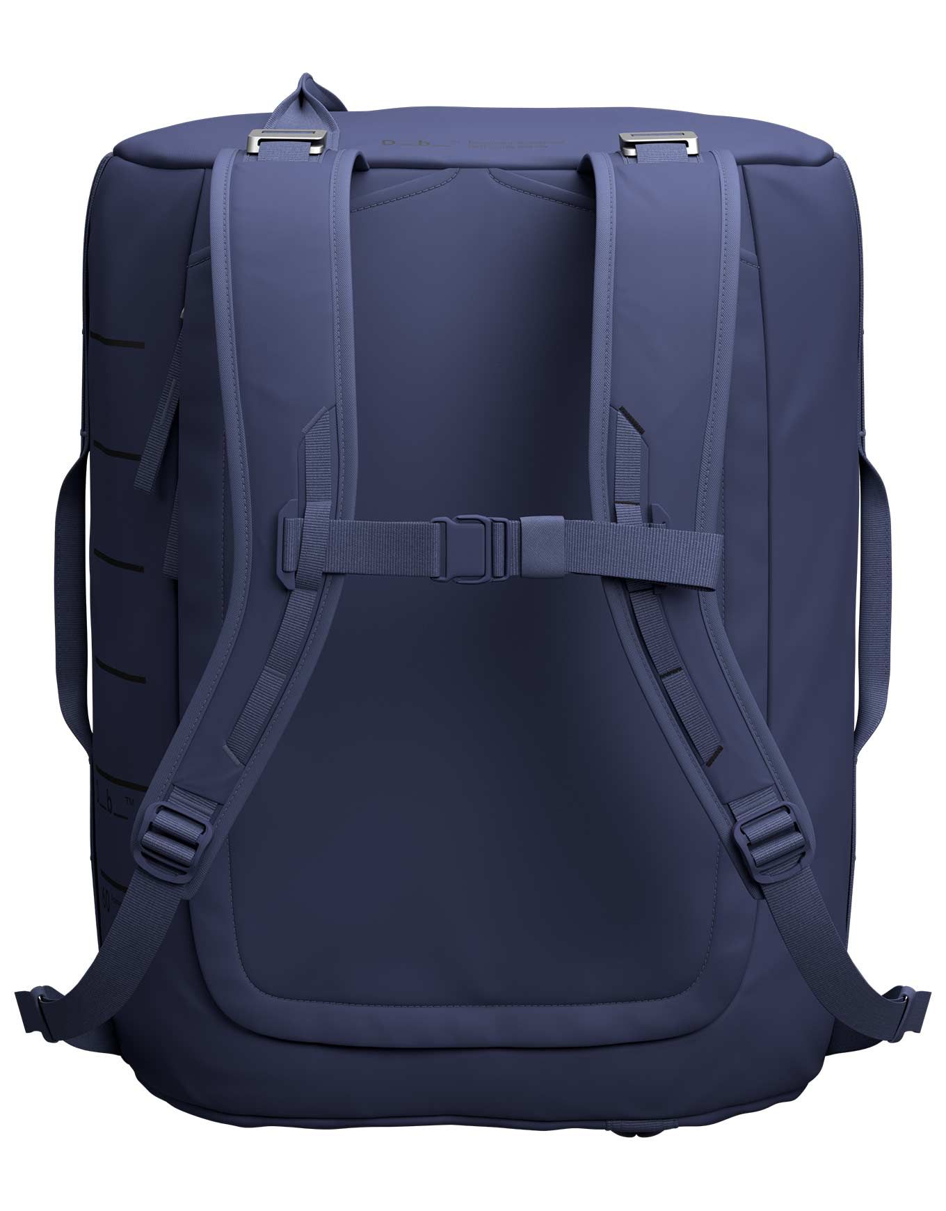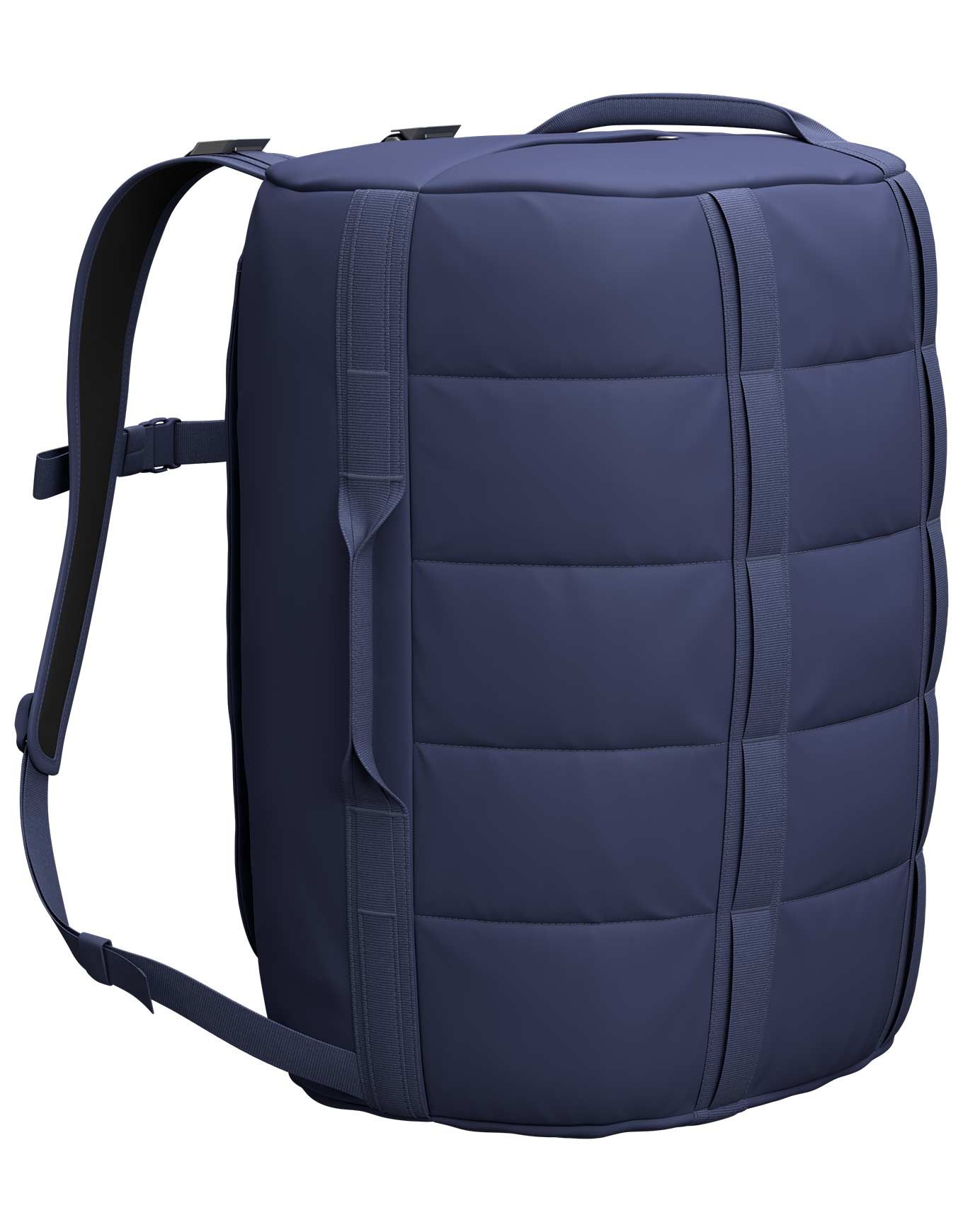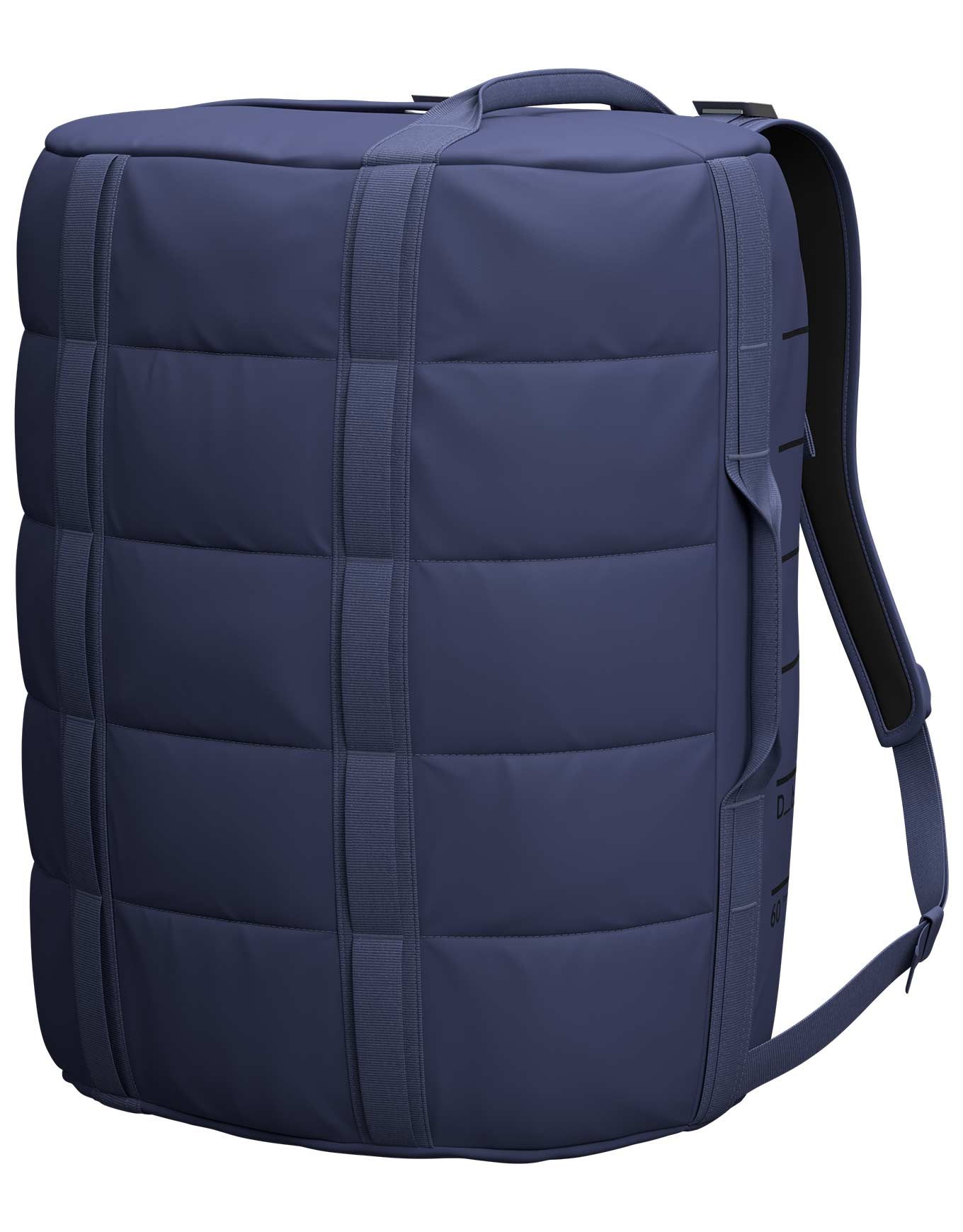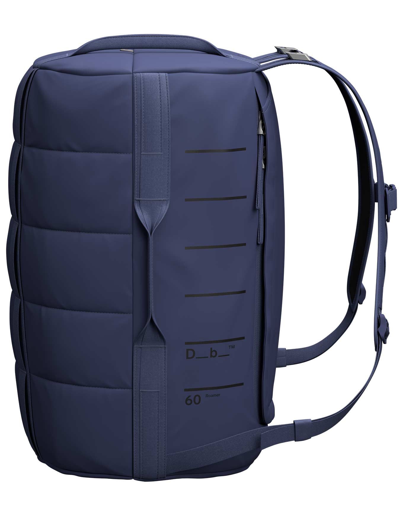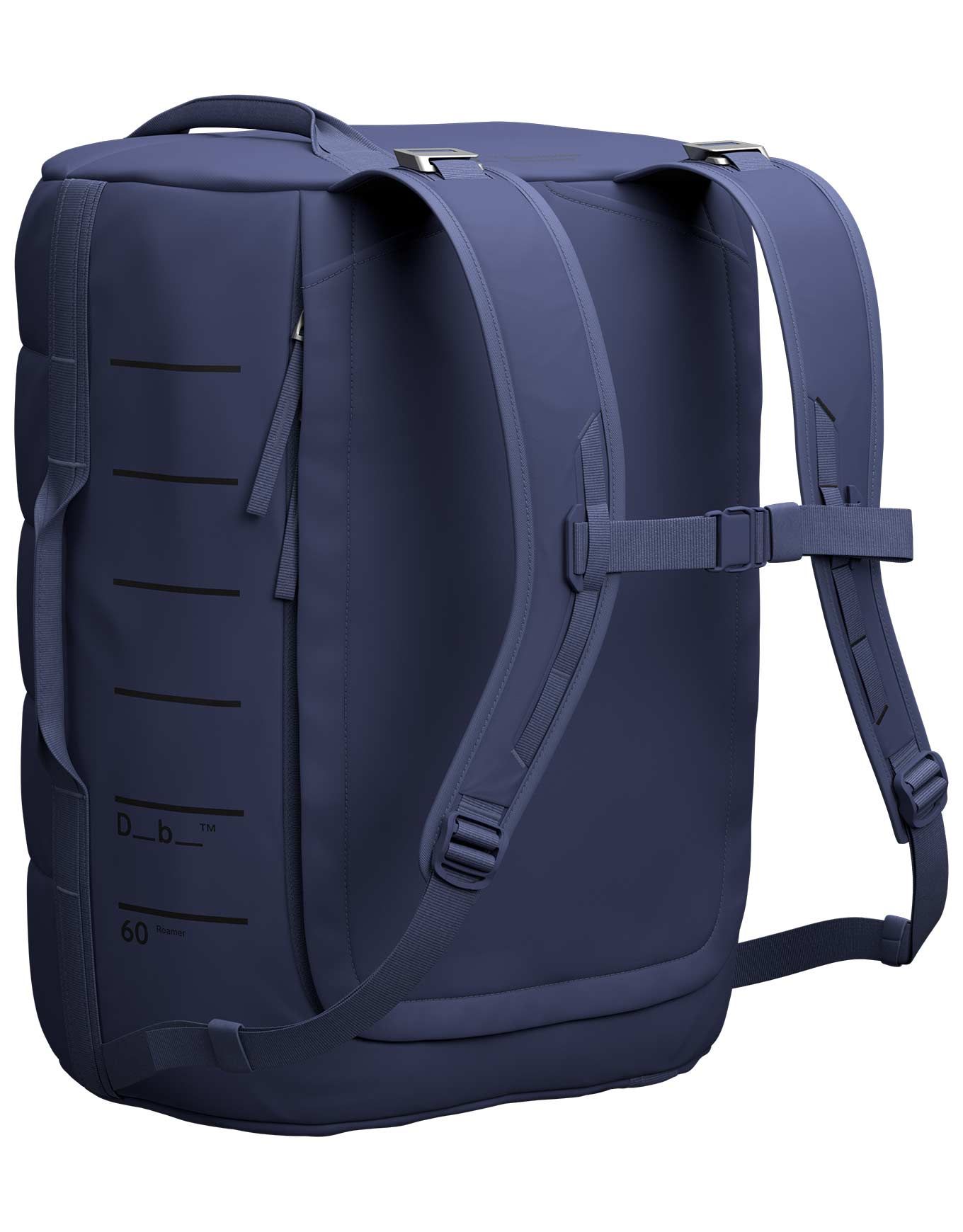 Db Roamer Duffel Blue Hour est un duffel de voyage 60 L à ouverture totale, doublure résistante à l’eau, bretelles ergonomiques et compatibilité Hook-Up™.