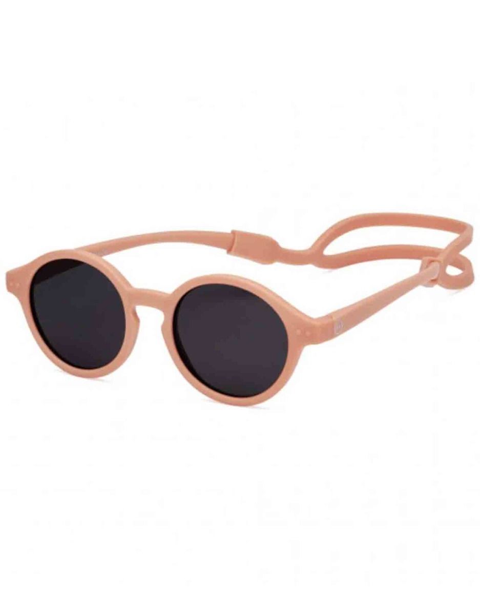 Les lunettes de soleil Izipizi Kids Plus #d Apricot protègent les yeux des 3-5 ans par des verres polarisés catégorie 3 filtrant 100 % des UV, une monture souple sans bisphénol A et un bandeau silicone amovible pour un maintien stable.