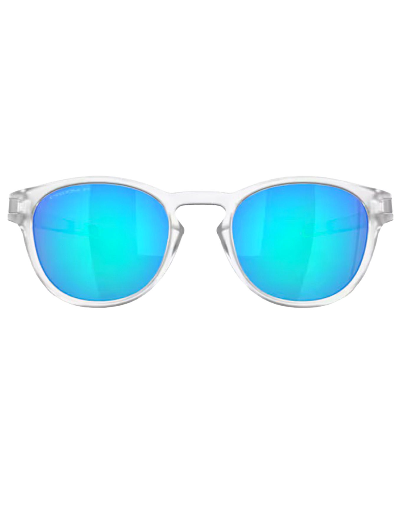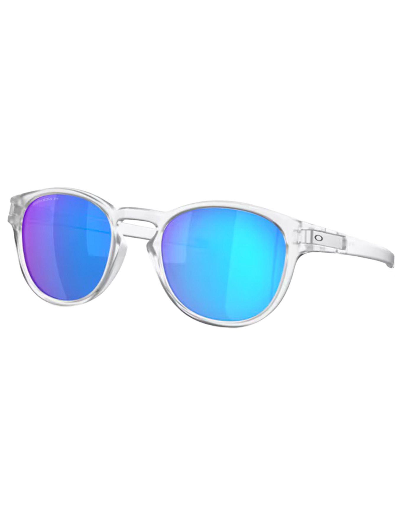 Oakley Latch Matte Clear Prizm Sapphire Polarized : lunettes de soleil ultra-légères en O-Matter™, verres polarisés Prizm™ et Plutonite® filtrant 100 % UV jusqu’à 400 nm, vision contrastée et confort durable en ville, plage ou rando.