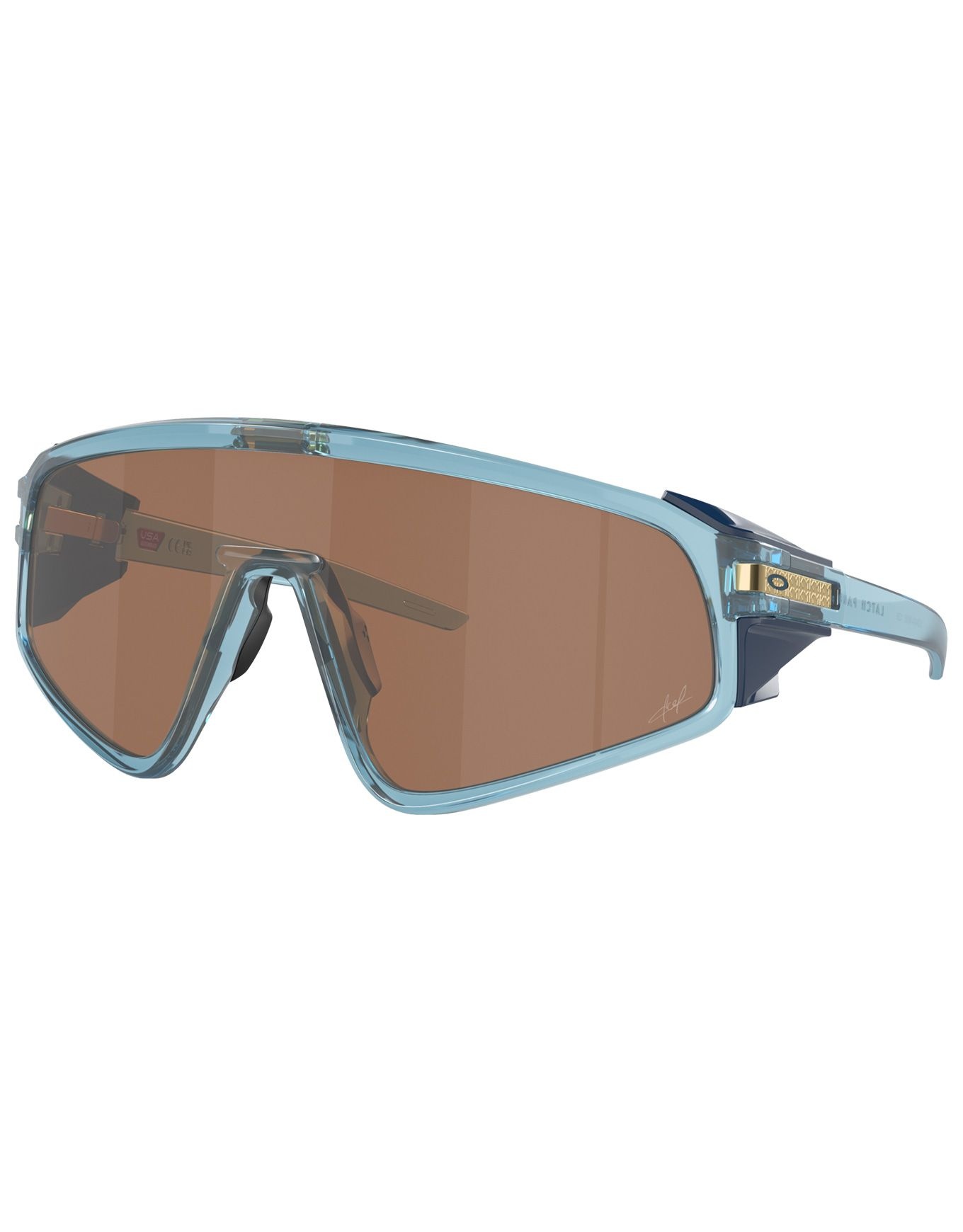 Les lunettes de soleil Oakley Latch Panel Signature Series Transparent Stonewash Prizm Tungsten, co-créées avec Kylian Mbappé, offrent un champ de vision panoramique, un confort durable en BiO-Matter™ et la technologie Prizm™ pour une vision contrastée en plein soleil.