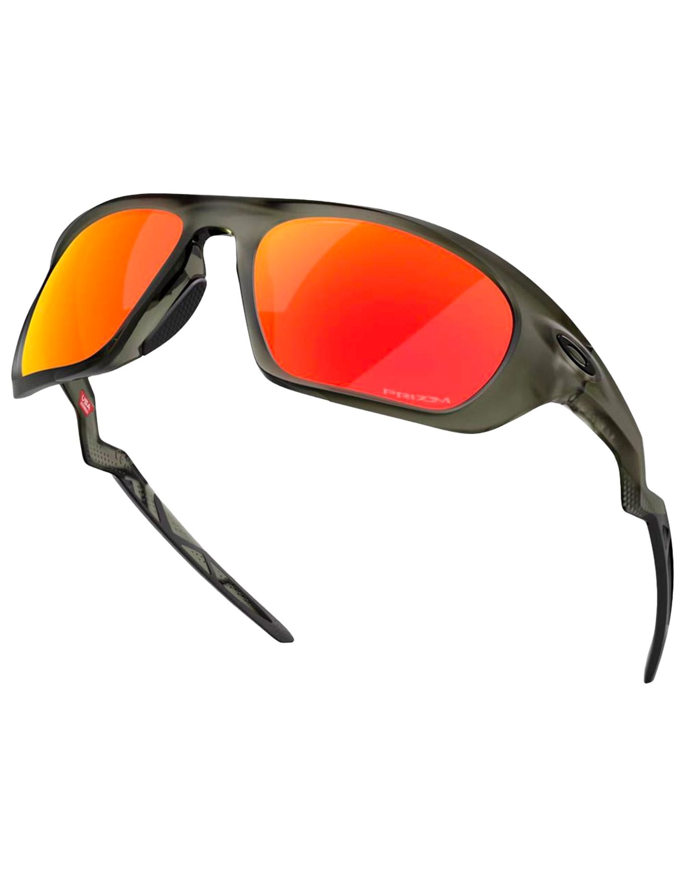 Lunettes de soleil Oakley Lateralis Matte Olive Ink/Prizm Ruby, monture O-Matter™ légère, verres catégorie 3 Prizm® aux contrastes optimisés, plaquettes Unobtainium® anti-glisse, forme sportive pour larges visages.