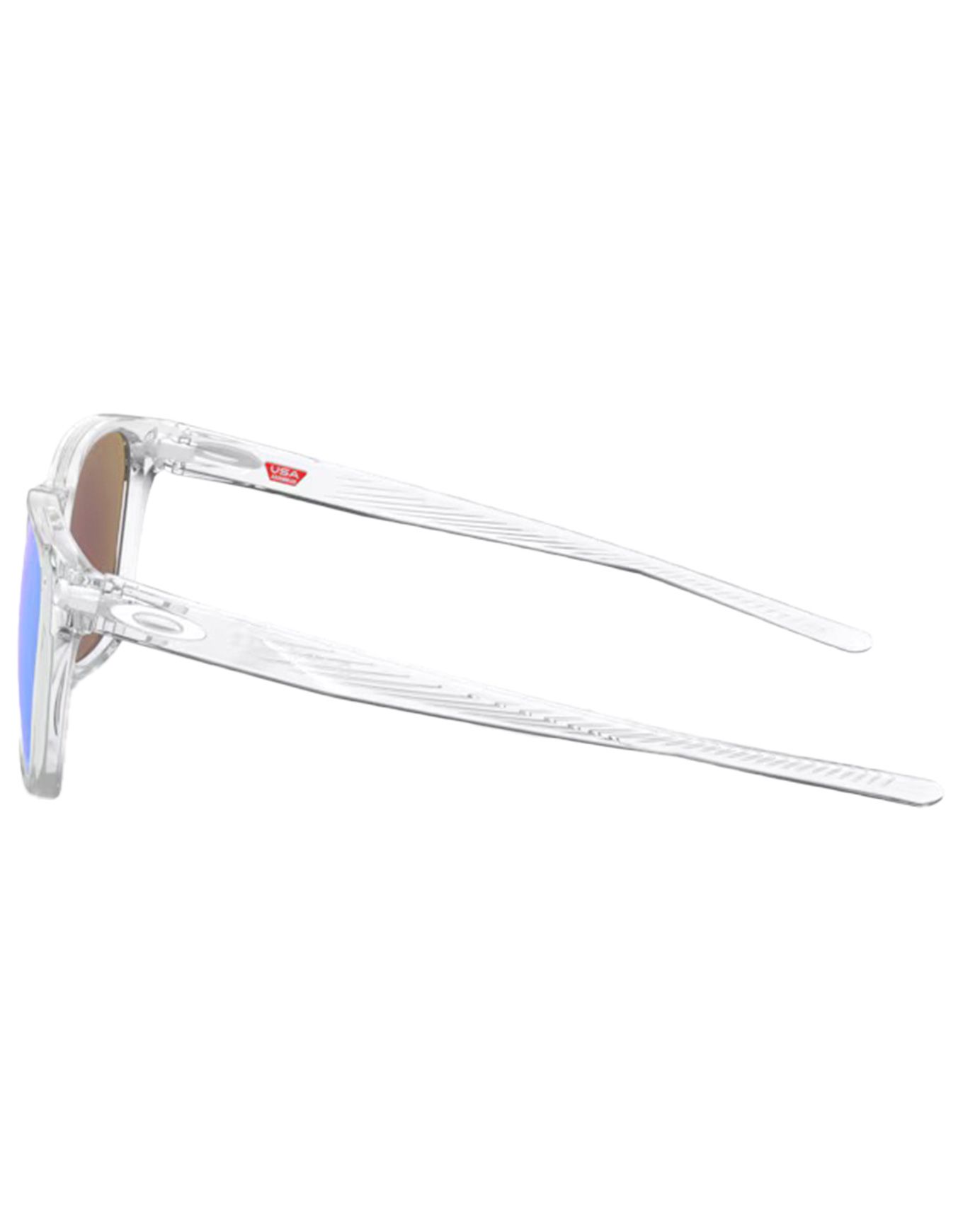 Les lunettes de soleil Oakley Ojector Polished Clear Prizm Sapphire combinent monture légère O-Matter™ et verres Prizm™ catégorie 3 pour un confort urbain et une vision contrastée ensoleillée.