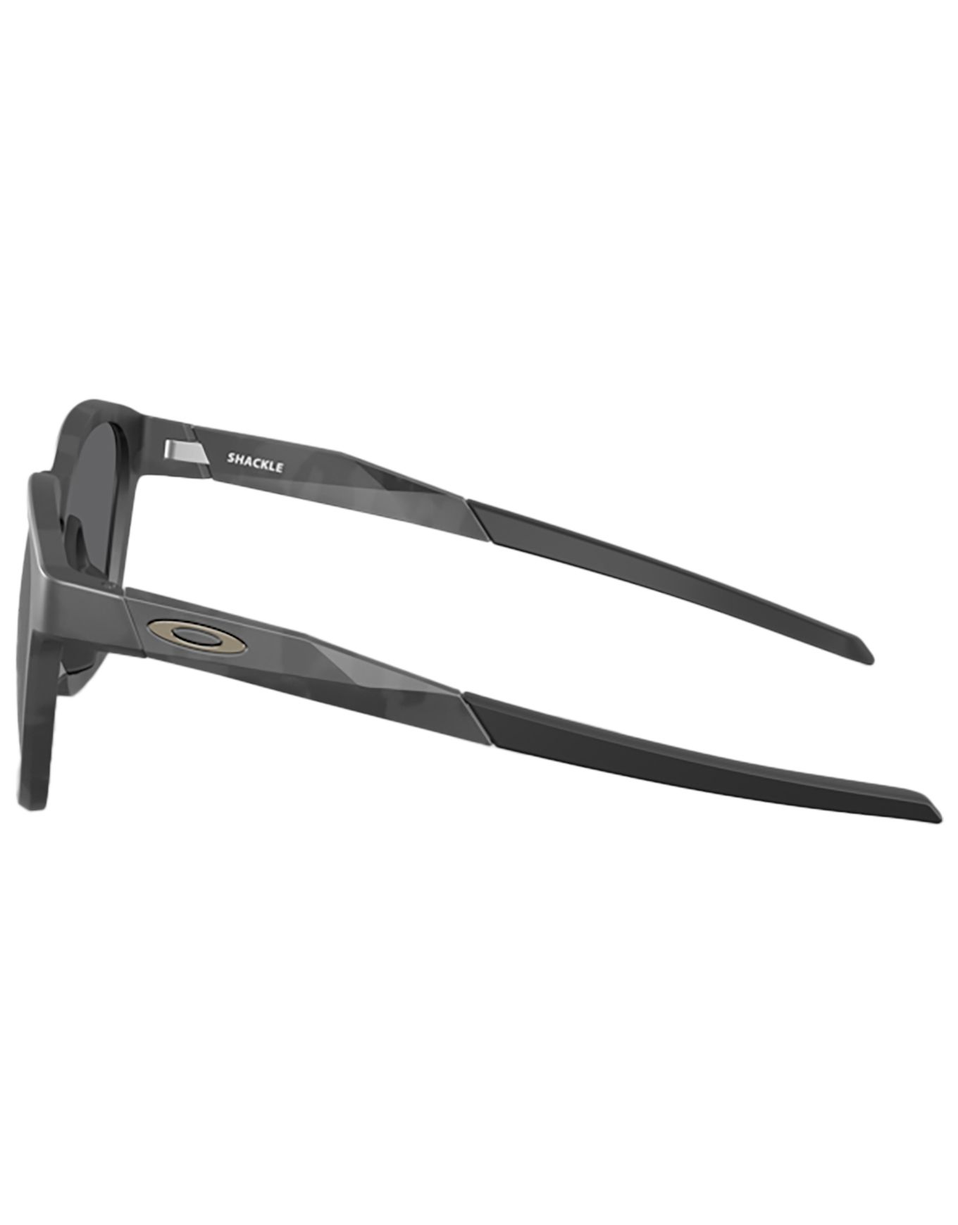 Oakley Shackle Mt Black Camo Prizm Black, lunettes de soleil enveloppantes ville-rando-plage : monture O-Matter® légère, branches réglables, verres Prizm™ cat.3 optimisant couleurs et contrastes.
