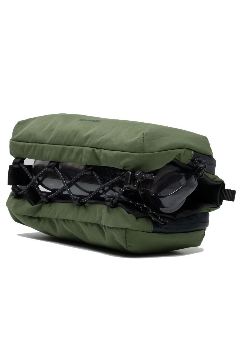 Sacoche Topologie Bottle Sacoche Medium Deep Forest Light : compartiment central pour gourde 500-1000 ml, deux poches zippées, intérieur organisé avec porte-clés, compatible sangles Wares System™.