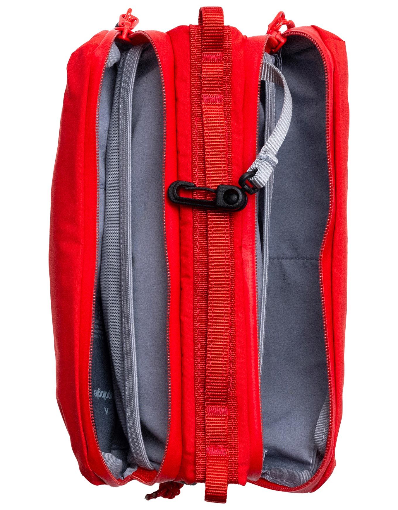 Sacoche Topologie Bottle Sacoche Medium en Red Tech Sateen : compartiment central pour gourde 500-1000 ml, deux compartiments zippés, poches intérieures et crochet clés, compatible sangles Wares System™.