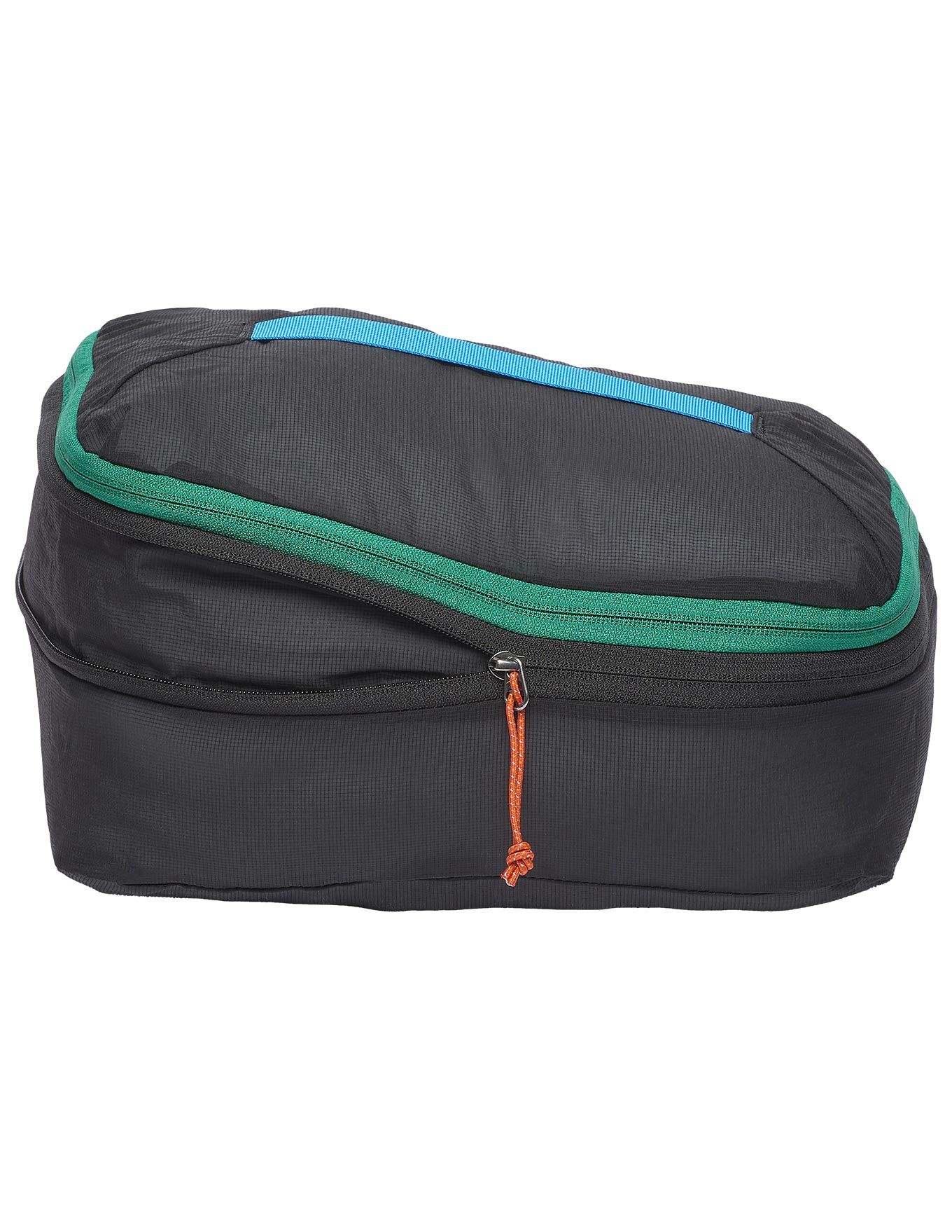 Cotopaxi Cubo 12L Exandable Packing Cube Black : organisateur extensible en matériaux recyclés, fermeture éclair intégrale pour accès rapide, range vêtements et accessoires en voyage.