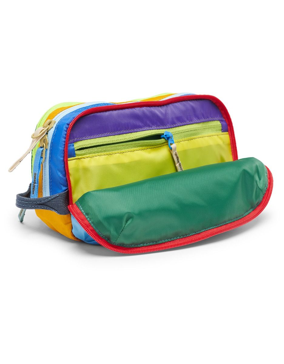 La poche de rangement Nido Accessory Bag Del Día de Cotopaxi est un organisateur compact en nylon et polyester 100 % recyclés, aux couleurs uniques issues de tissus invendus. Trois compartiments et une poche zippée protègent vos essentiels, poignée latérale intégrée.