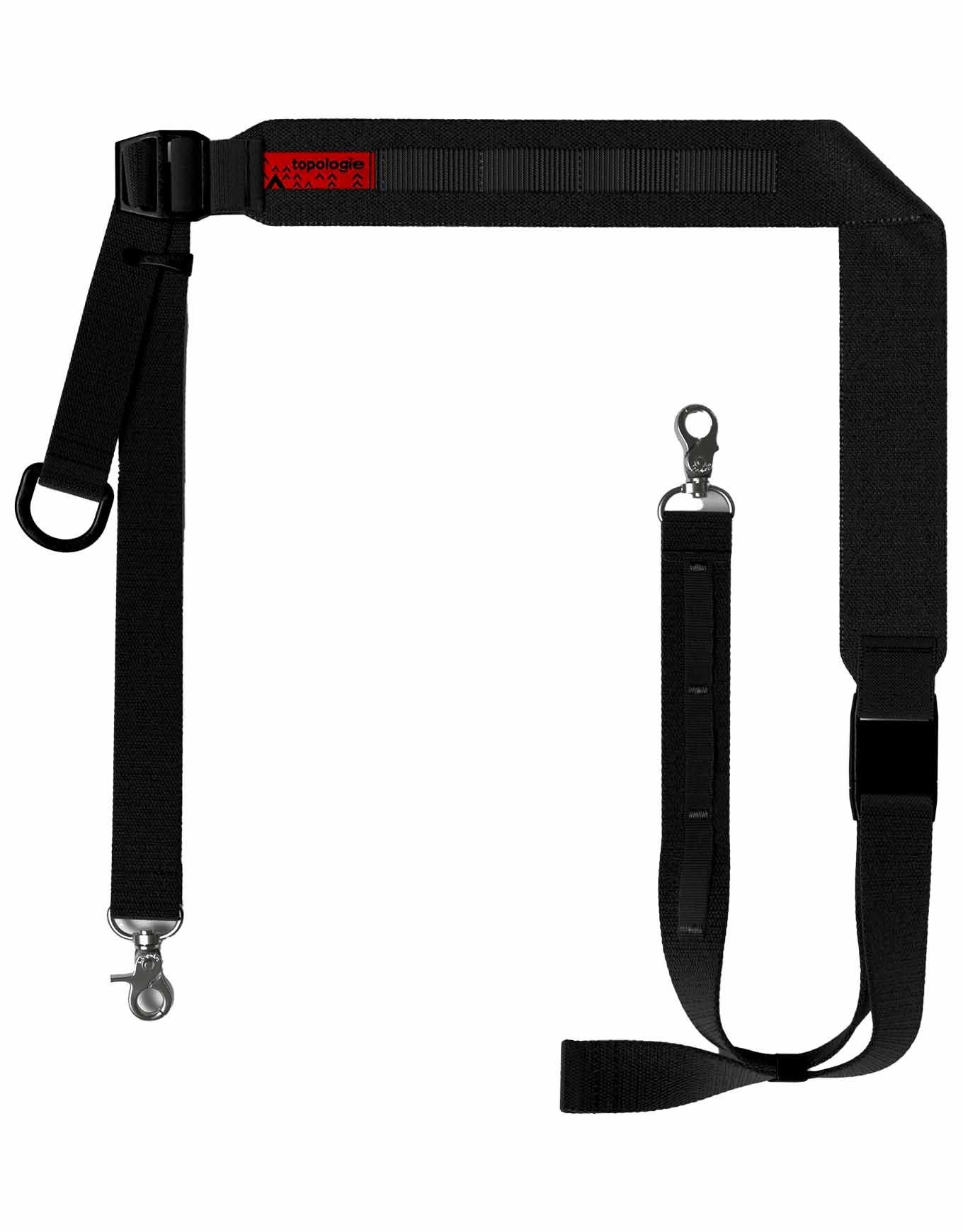 Sangle Utility Sling Wide Black Topologie, large et ajustable, offre confort quotidien grâce à son design plat et son fermoir rapide ultra-résistant; deux attaches intégrées gardent vos essentiels à portée de main.