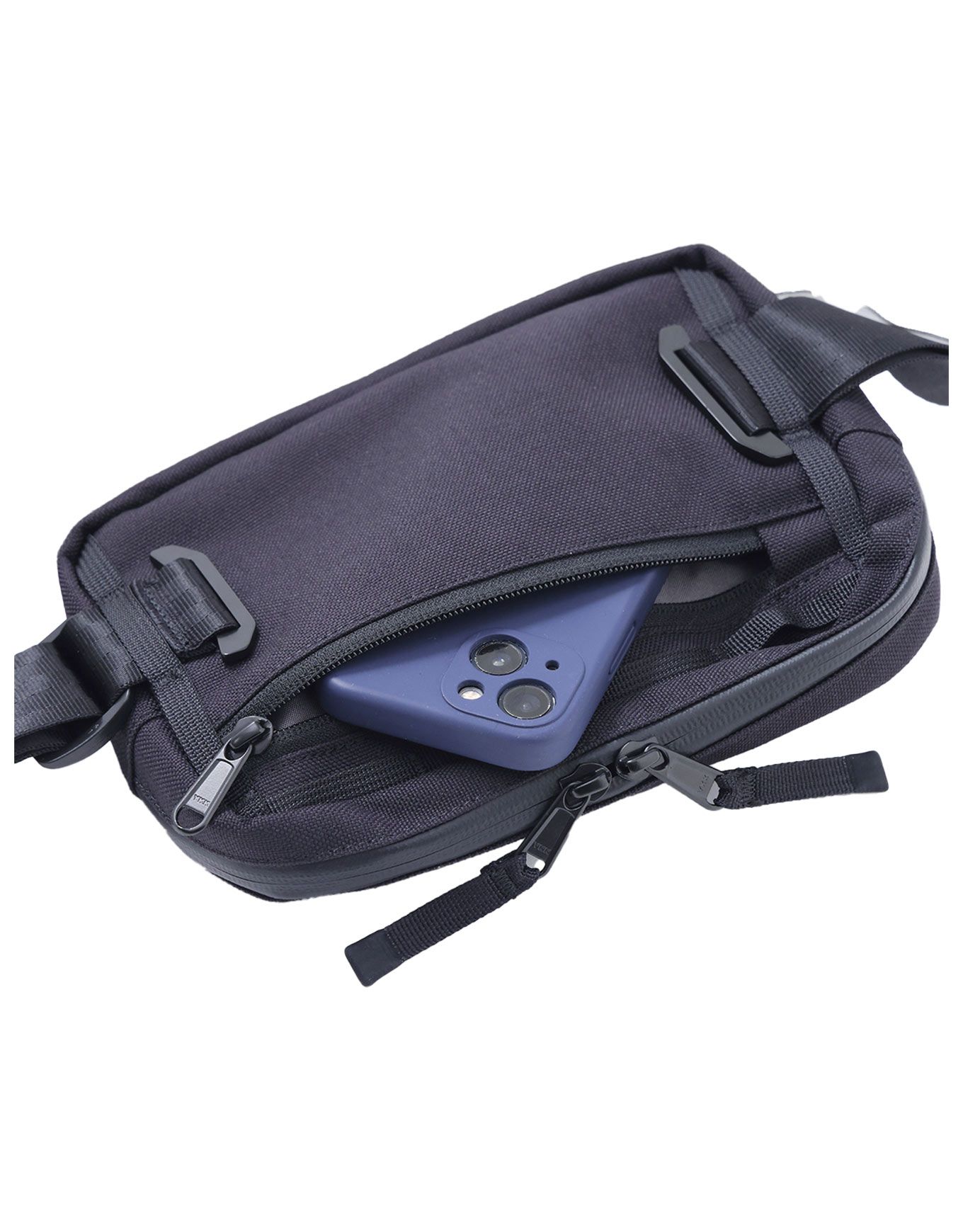 Téléphone et portefeuille se dissimulent en toute discrétion dans une poche arrière zippée parfaitement intégrée. À l’avant, une poche cargo en toile offre un espace supplémentaire pour ranger les petits objets dont vous avez besoin en permanence.