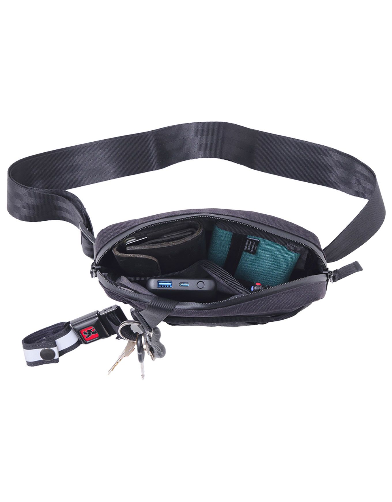 Sacoche bandoulière Chrome Barrage 2L Sling Black X en toile, compartiment principal zippé PU, poche arrière discrète, poche avant cargo et bandoulière TLok modulaire.