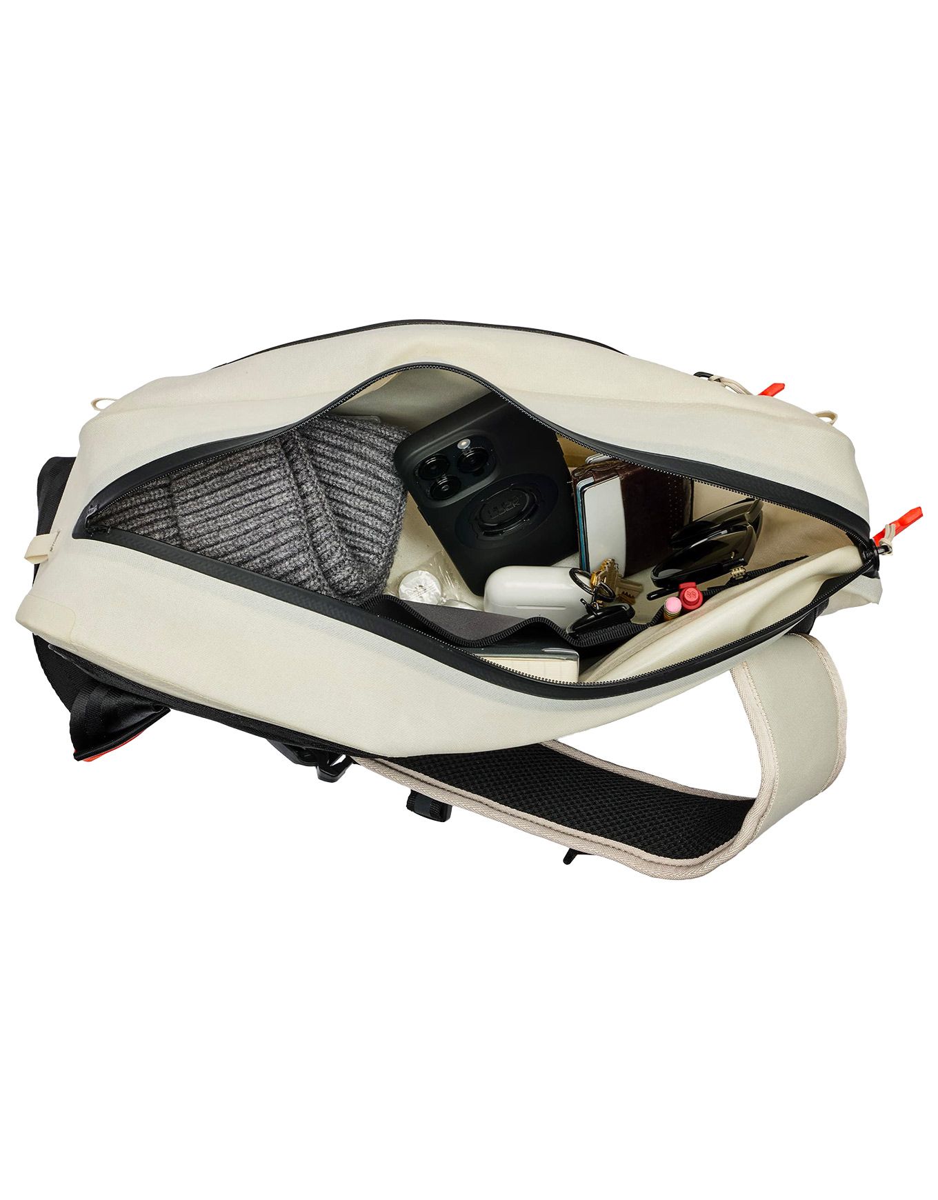 Pour une stabilité optimale en mouvement, le système de portage associe la célèbre boucle de ceinture de sécurité à une sangle latérale. D’une capacité de 8 litres et dotée de plusieurs compartiments, elle offre la possibilité d’emporter de nombreux objets avec soi.
