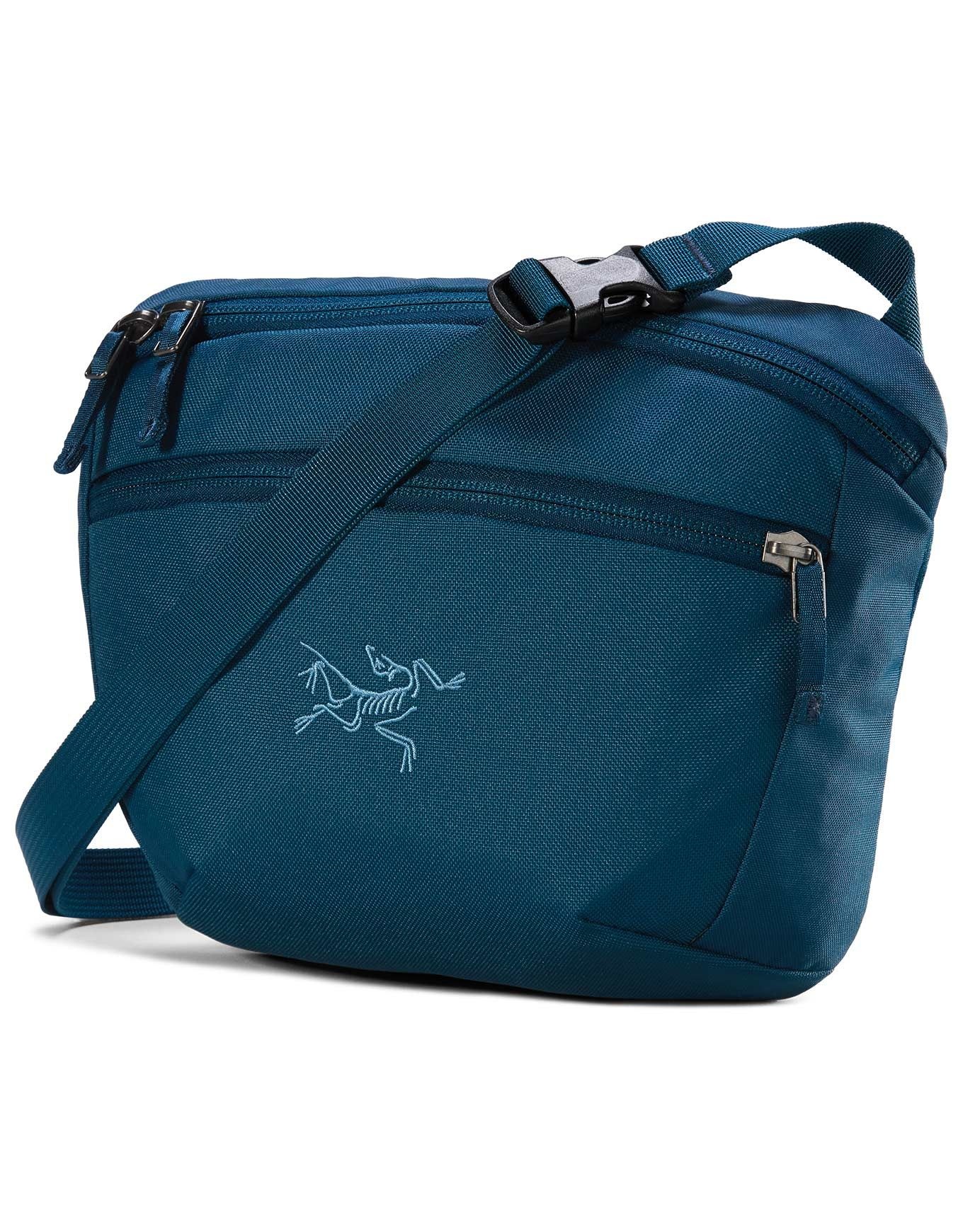 La sacoche Arc’teryx Mantis 2 Waist Pack Nightscape, 2,5 L en matière recyclée, offre rangements sécurisés, port épaule/taille et traitement déperlant pour randonnée.