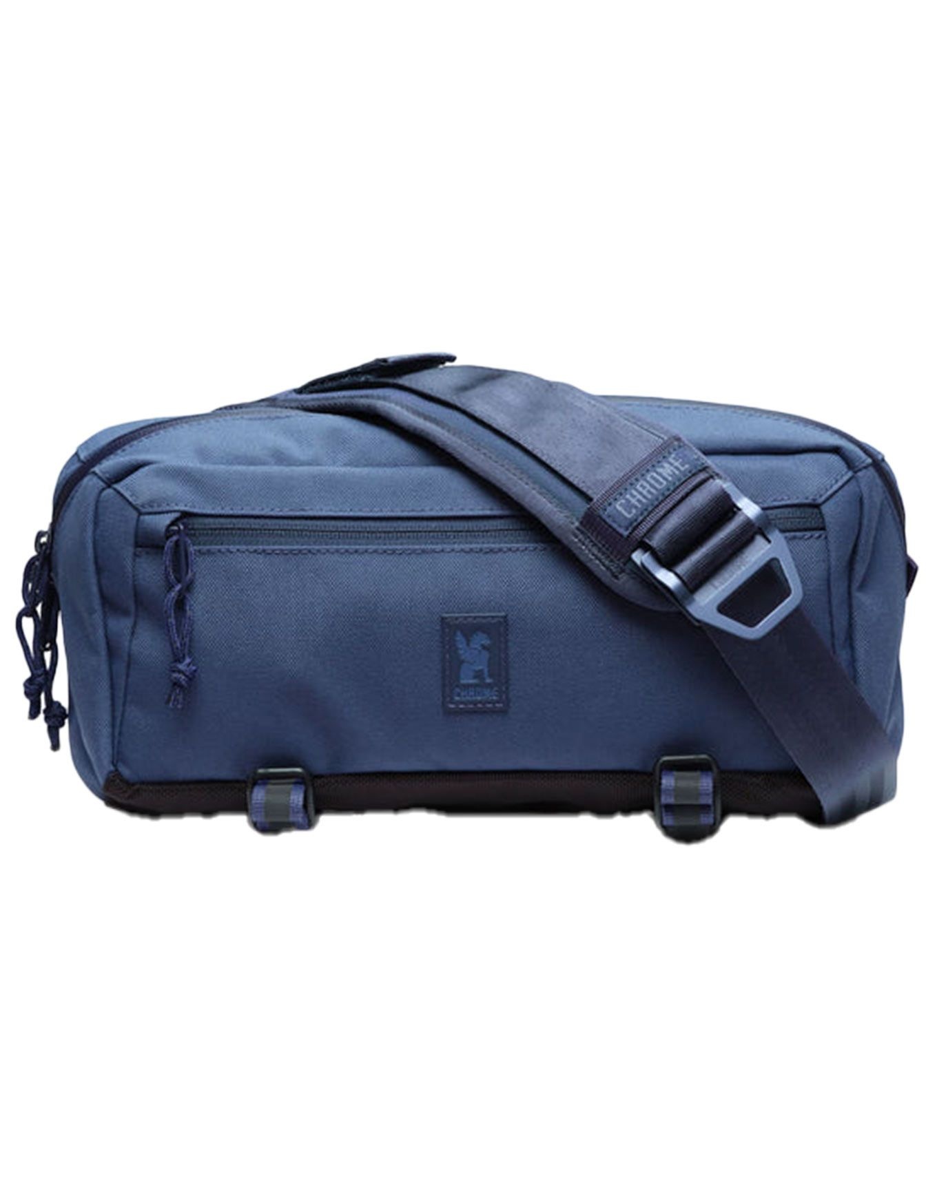 Sac Mini Kadet Indigo Chrome : sac bandoulière compact en nylon 1050D ultra-résistant, boucle ceinture sécurité + sangle latérale pour stabilité optimale et rangement organisé de l’essentiel.