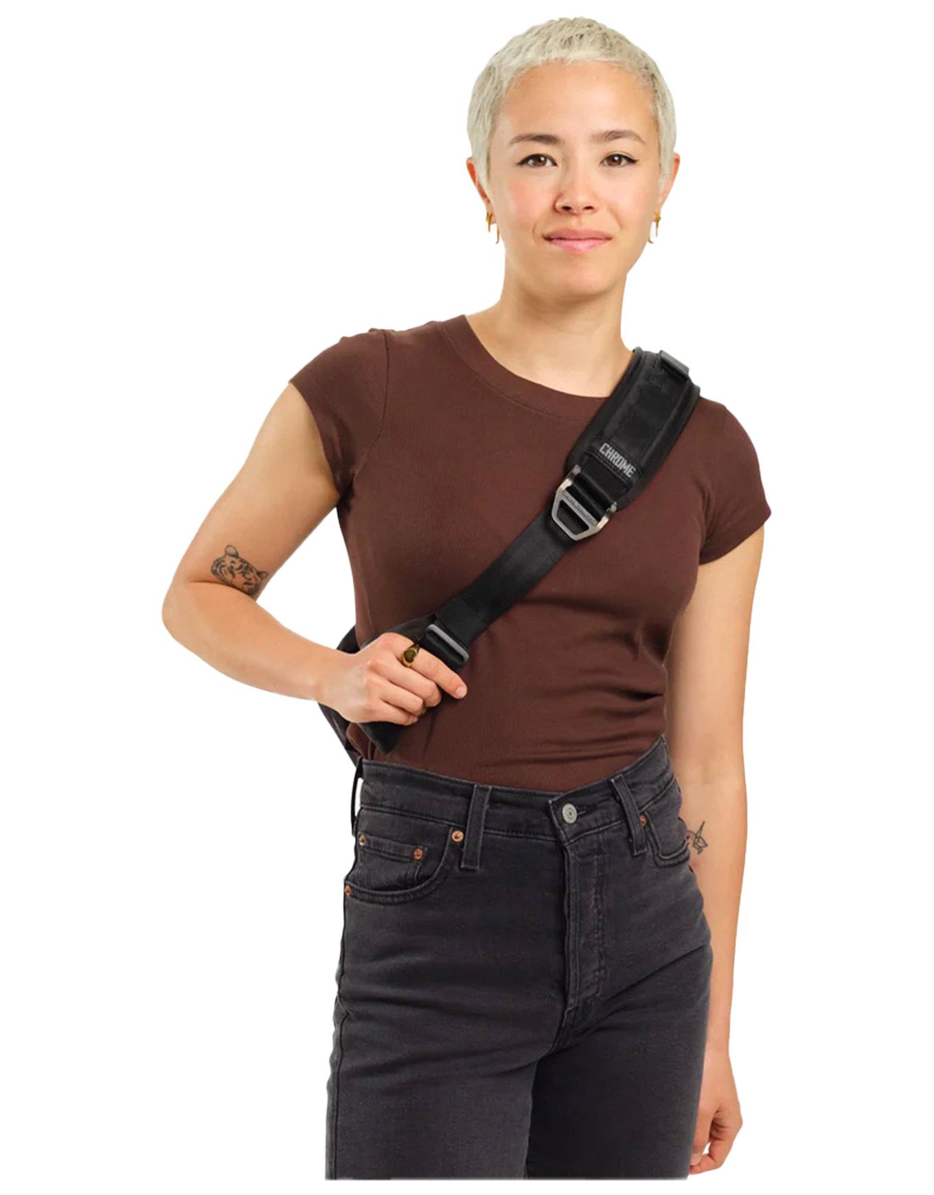 La stabilité en mouvement est assurée par l’association de la boucle de ceinture de sécurité emblématique de Chrome et d’une sangle latérale. Téléphone, portefeuille, clés et autres petits accessoires trouvent leur place dans les différents compartiments prévus à cet effet.