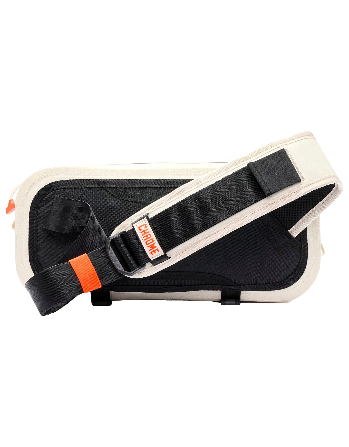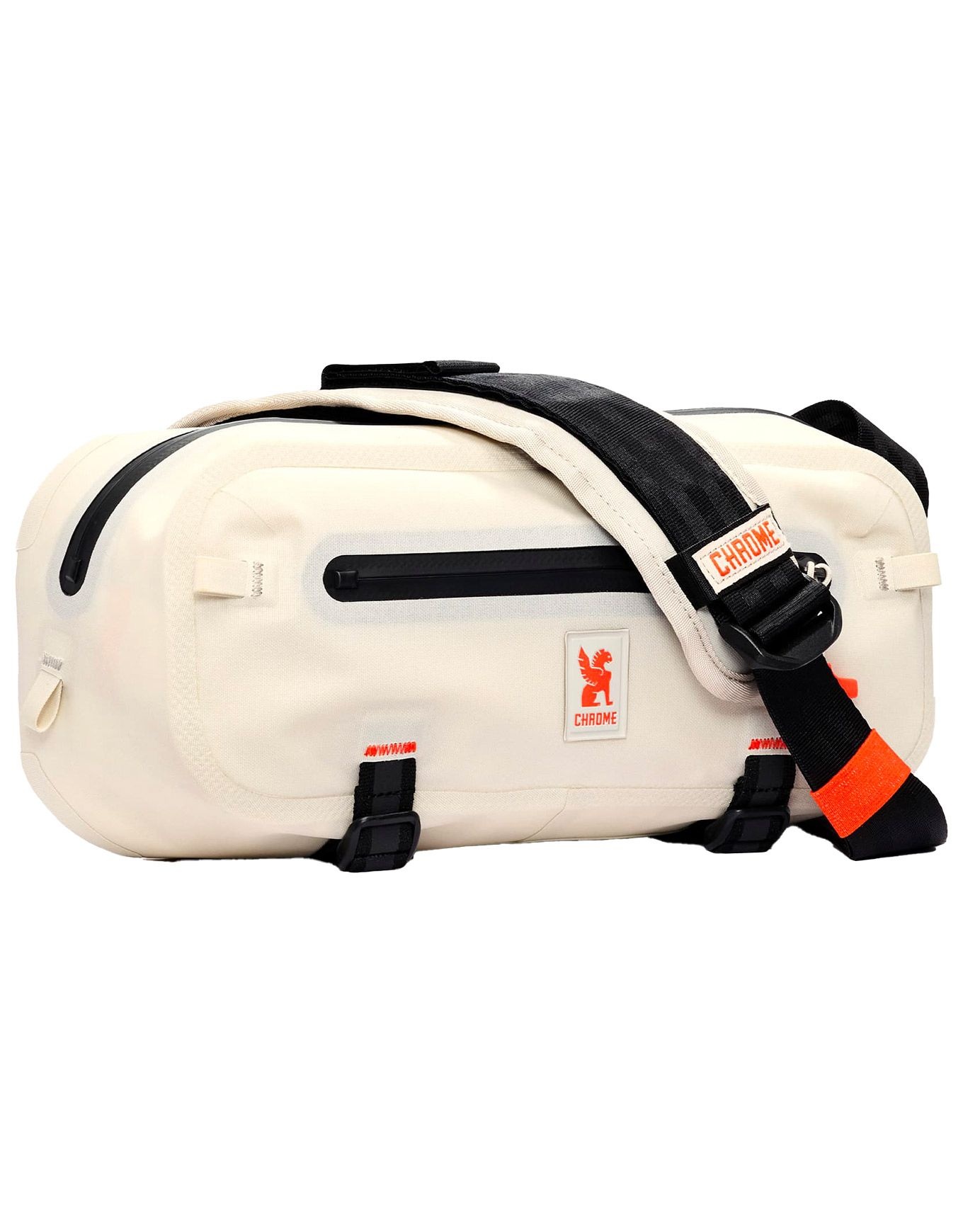 Mini Kadet WP Future White de Chrome : sacoche bandoulière urbaine 5 L entièrement imperméable, stabilité assurée par boucle ceinture + sangle latérale, tissu résistant à l’abrasion et compartiments pensés pour le vélo ou la marche.
